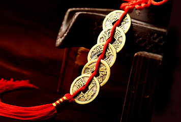 铜质红穗五帝钱★五铜钱车挂宅挂家居饰品