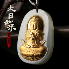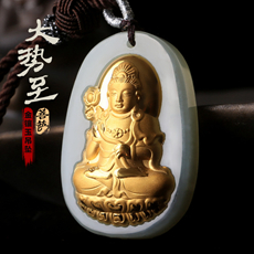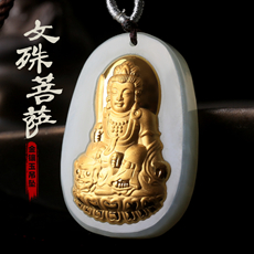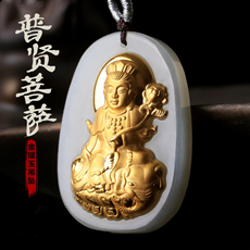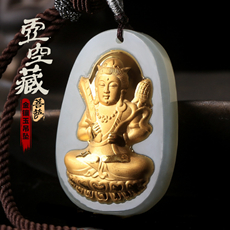 金镶玉本命佛吊坠★和田玉镶足金属牛本命佛属虎本命佛虚空藏菩萨
