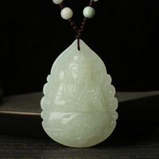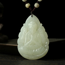 精品和田玉白玉虚空藏菩萨吊坠★属牛属虎本命佛玉佩★高档礼品一物一图多款可选