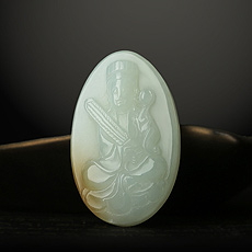 【精工艺】和田玉白玉大号虚空藏菩萨吊坠★属牛属虎本命佛守护神★生肖牛虎开运吉祥物