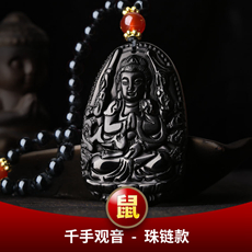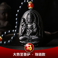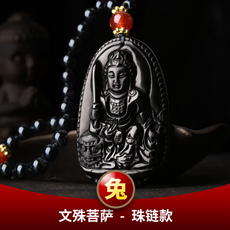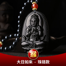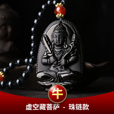 黑曜石属牛本命佛虚空藏菩萨吊坠★巳酉丑生肖三合贵神三合项链
