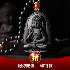 黑曜石属猪本命佛阿弥陀佛吊坠★亥卯未生肖三合贵神三合项链
