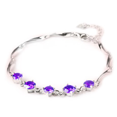 925银魅力星空款时尚韩版手链★合成锆石仿宝石甜美女性手镯★紫色白色简约学生个性生日礼物