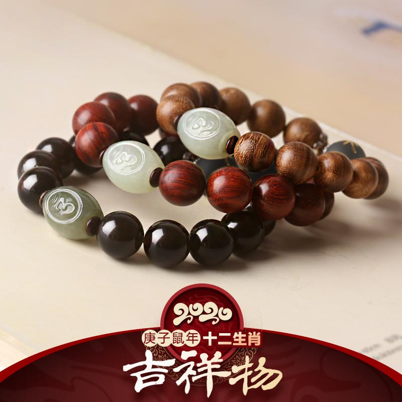 属猪人2020年生肖吉祥物★天禄宝运阵手链男款★和田玉配黑曜石沉香小叶紫檀多款可选