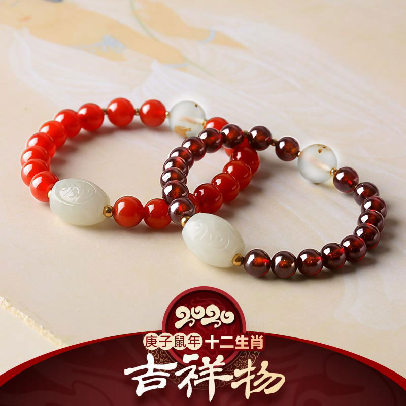 属猪人2020年生肖吉祥物★天禄宝运阵手链女款★和田玉配红玛瑙石榴石多款可选