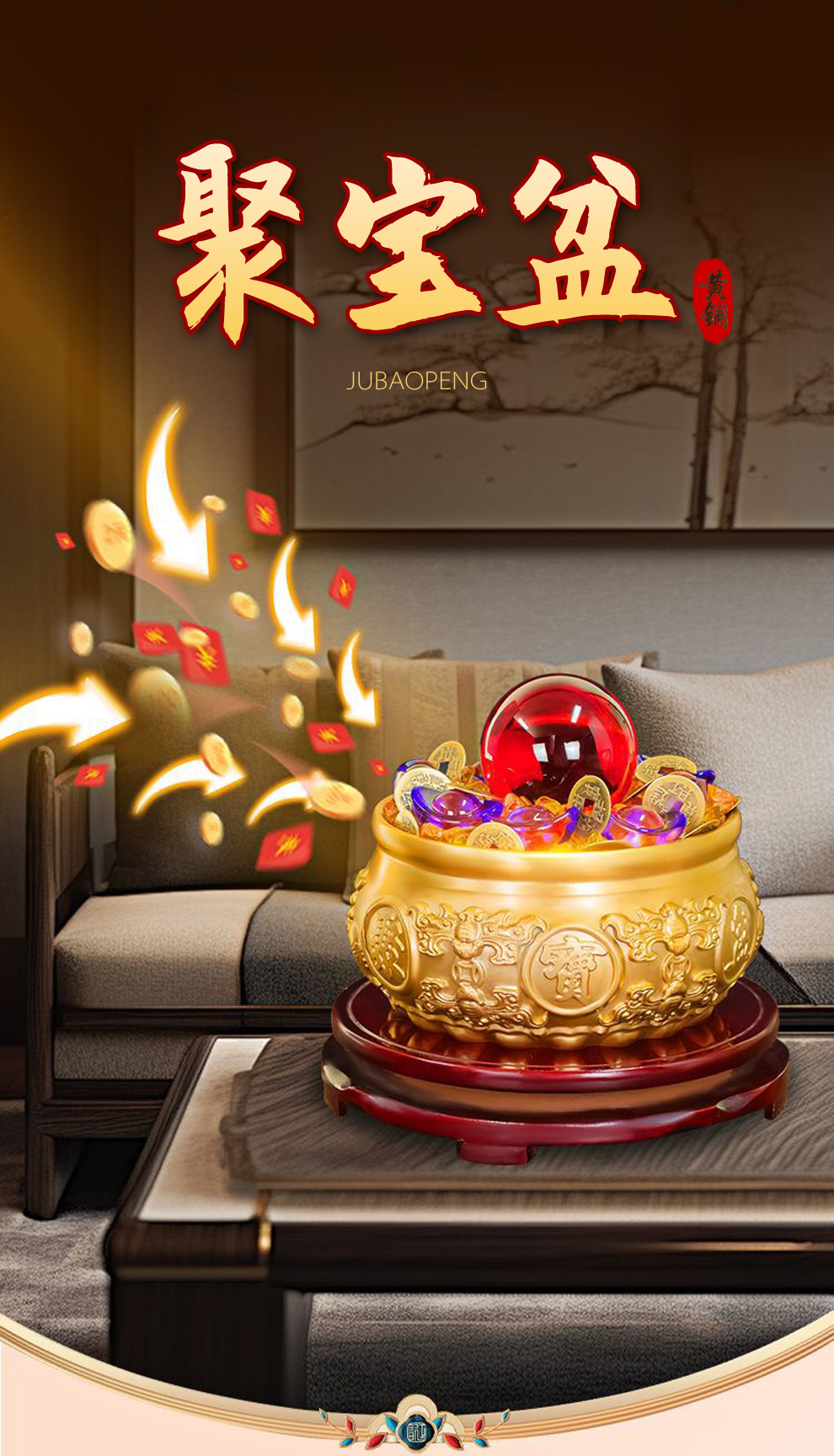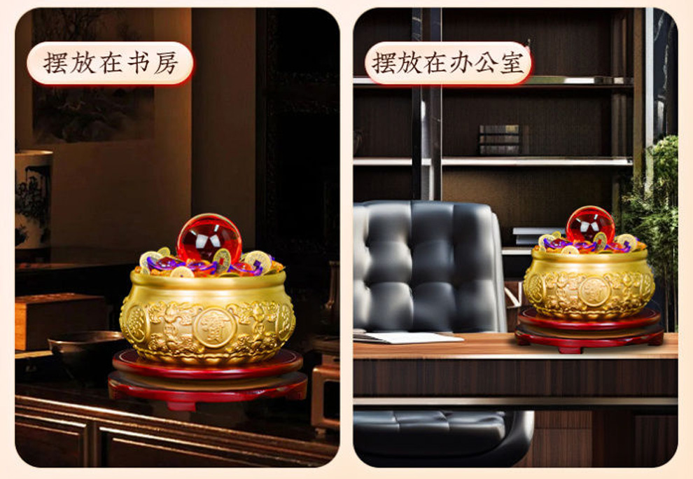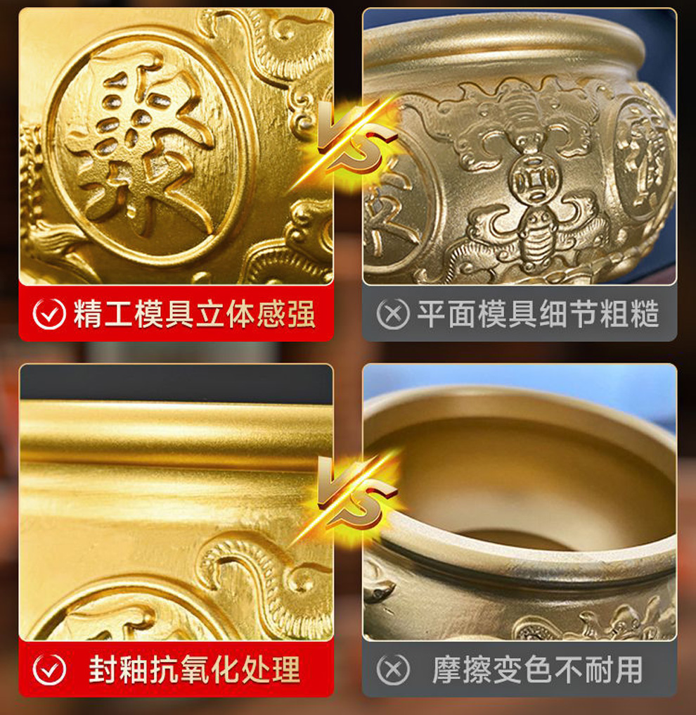 铜制聚宝盆八方来财摆件★黄铜聚宝盆家居店铺客厅摆件开业工艺品★五帝钱钱罐装饰品