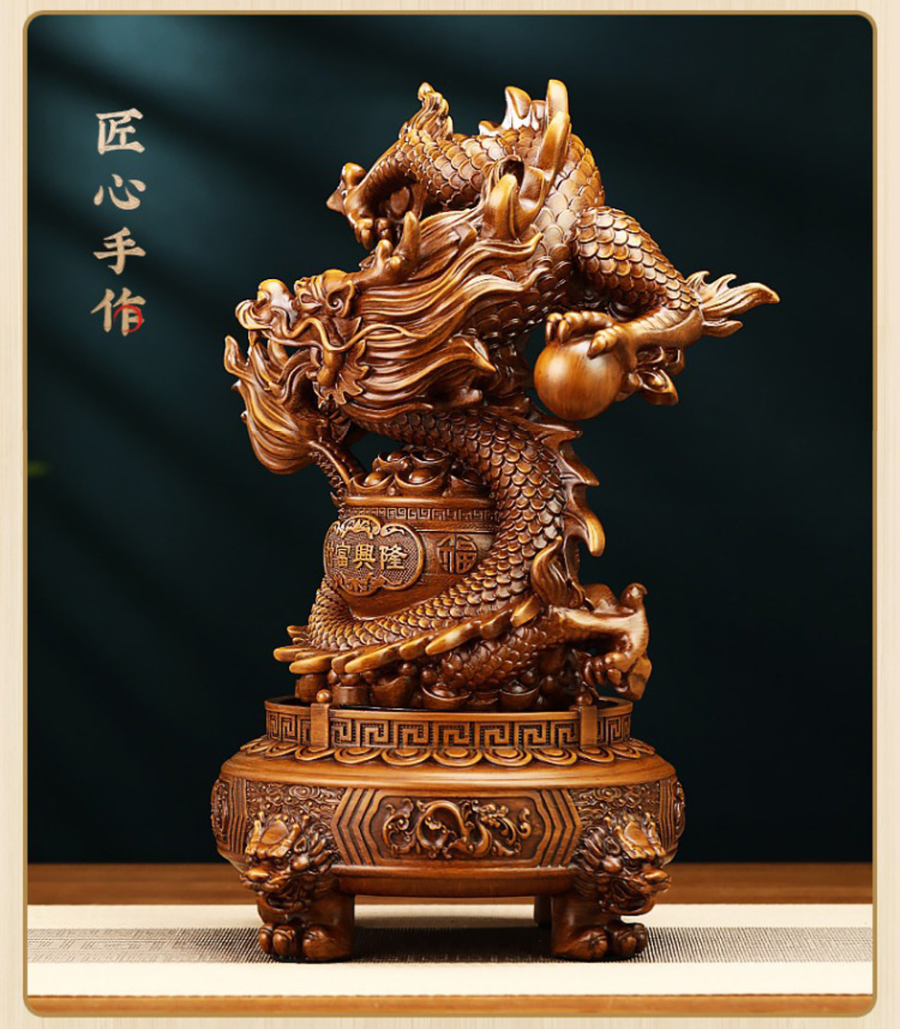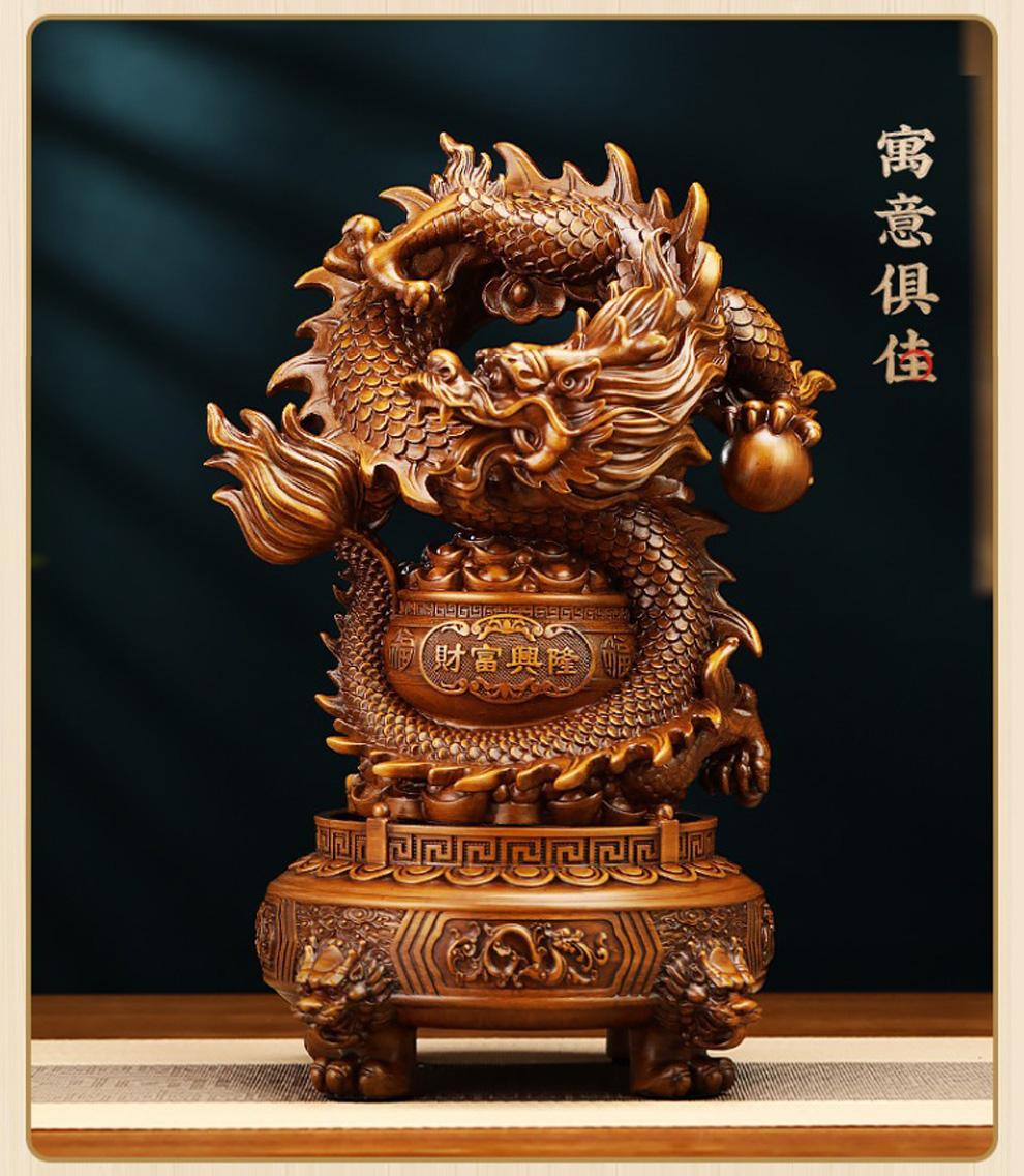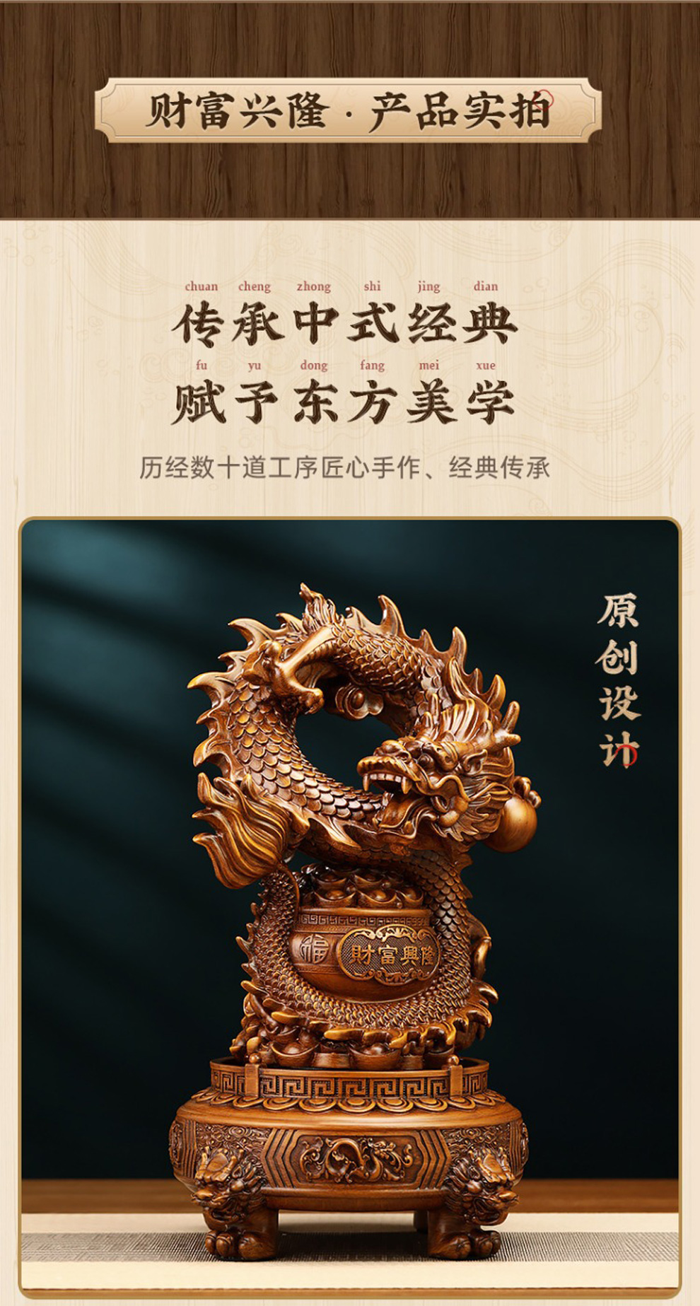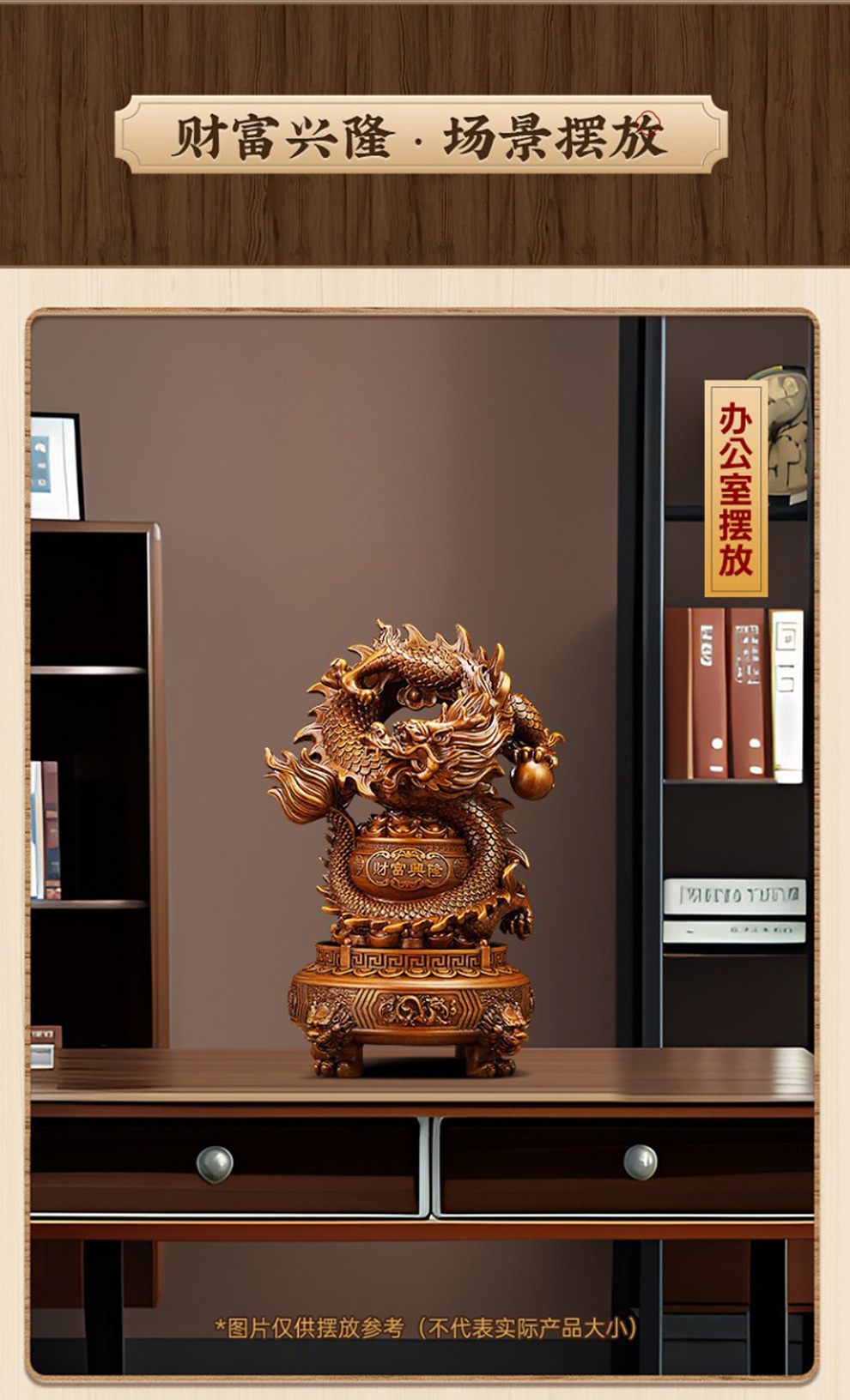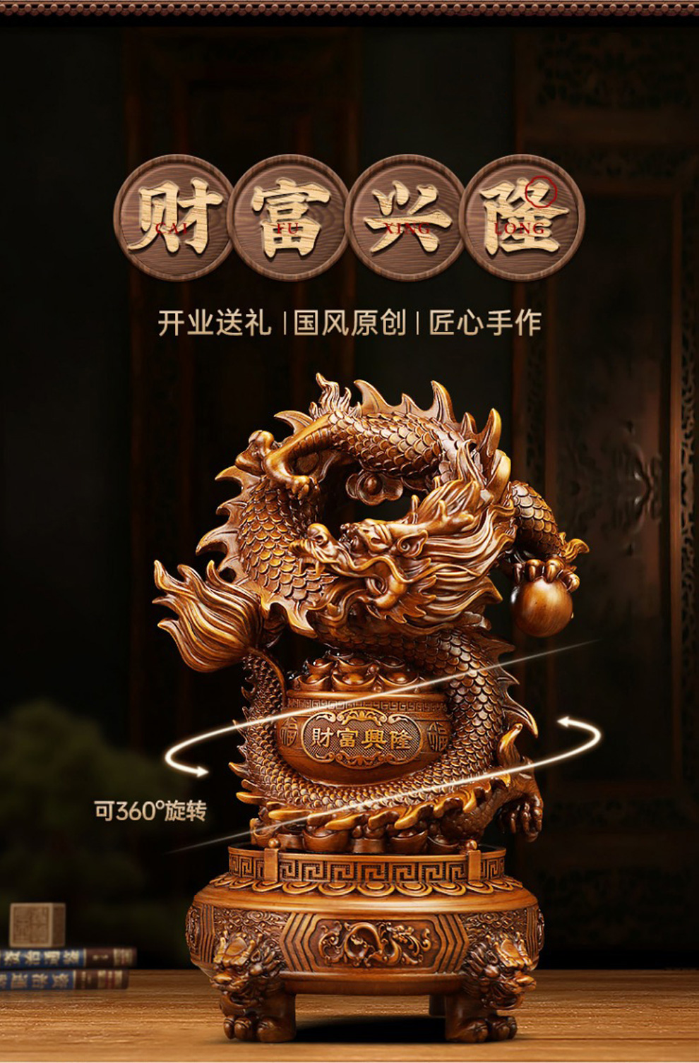 财富兴隆龙聚宝盆招财龙摆件★三足鼎可转动★店铺开业乔迁搬家礼品家居客厅办公室酒柜树脂装饰品