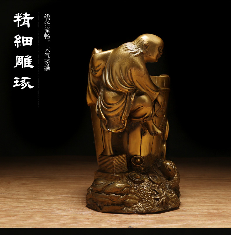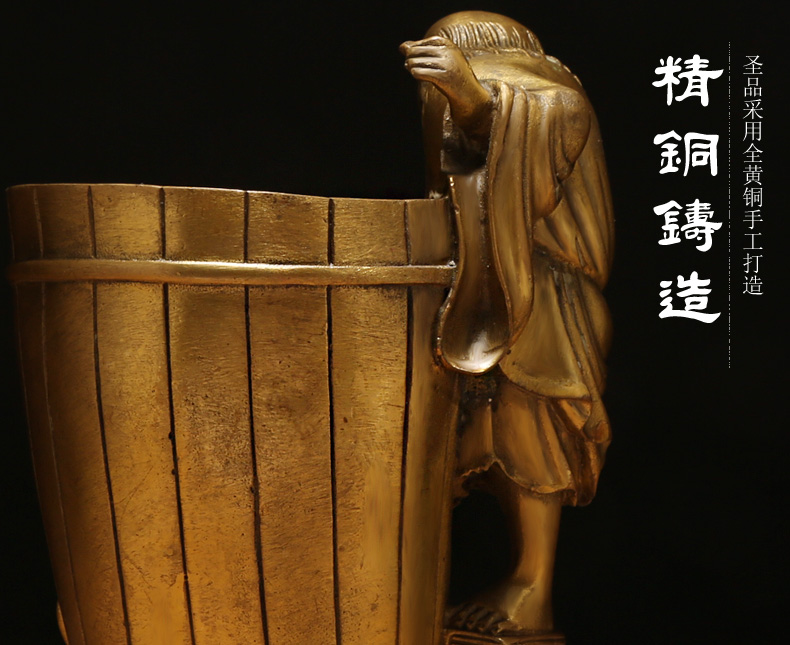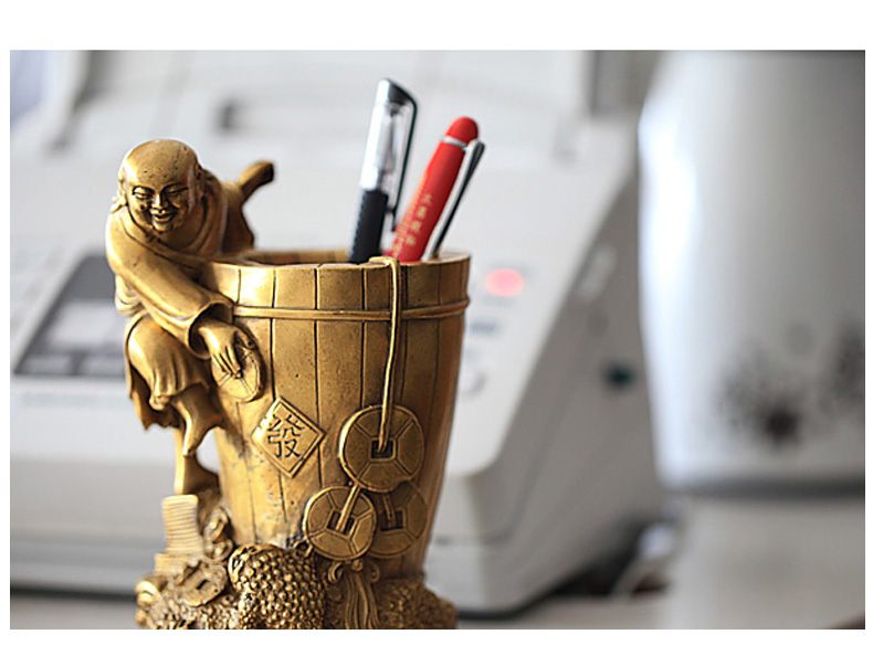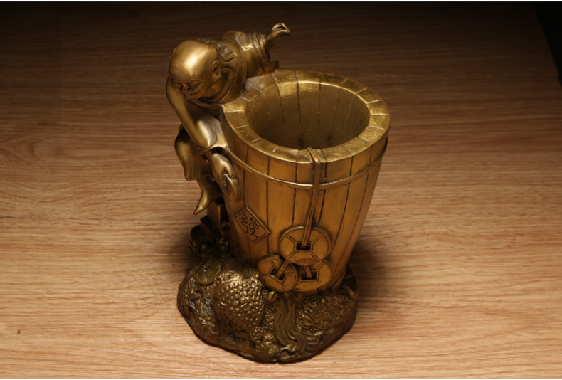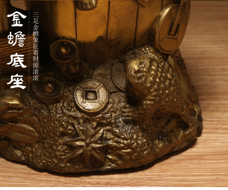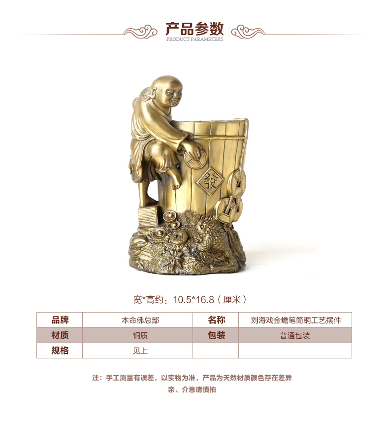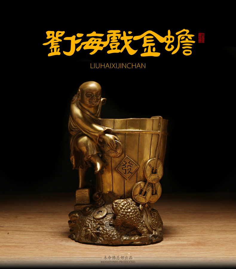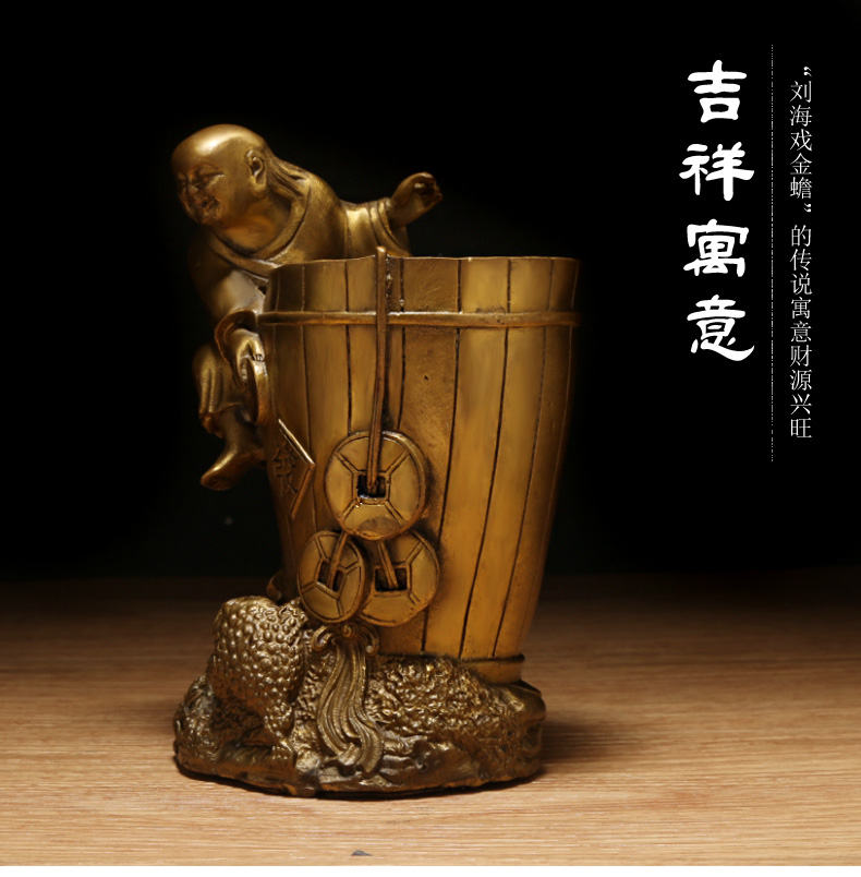 铜器刘海戏金蟾笔筒★三足金蟾办公家居工艺品摆件