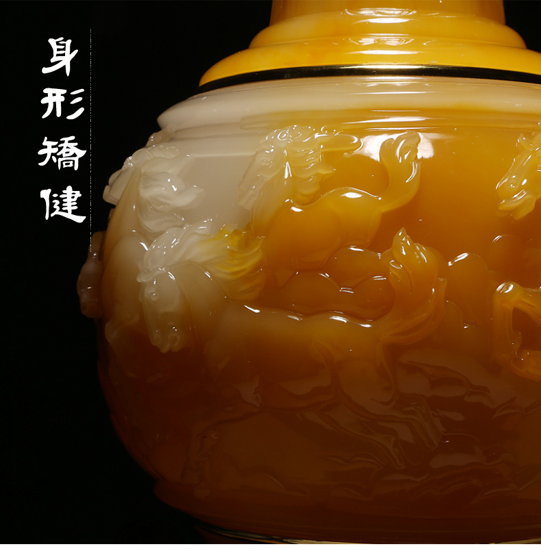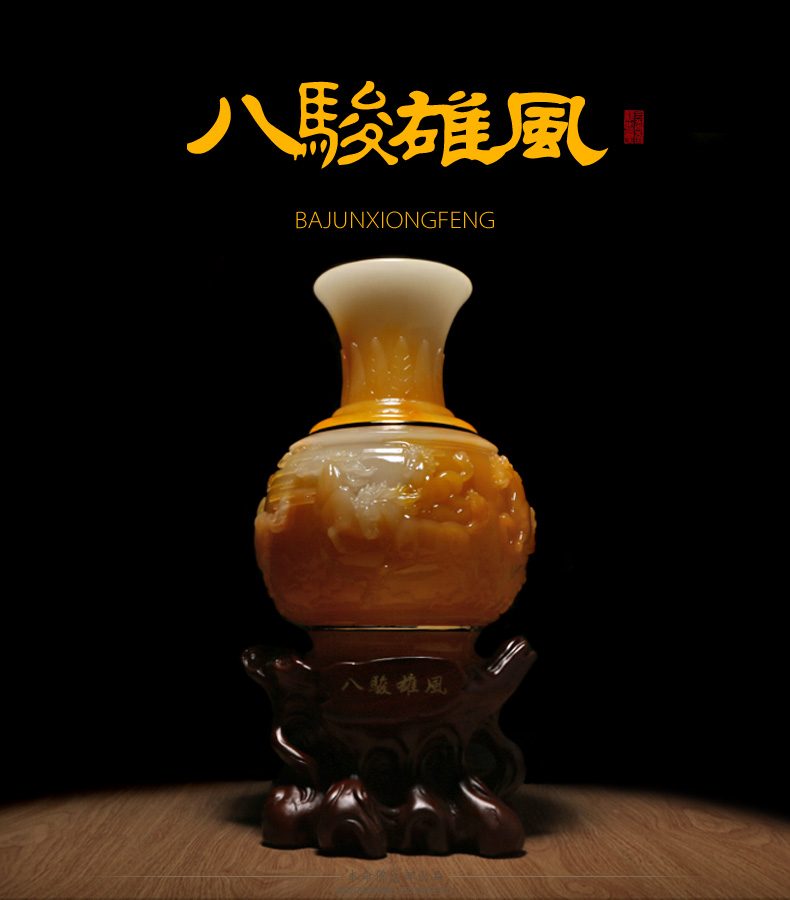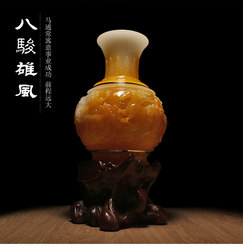 仿黄玉八骏雄风马到成功★家居办公装饰品花瓶搬家礼品