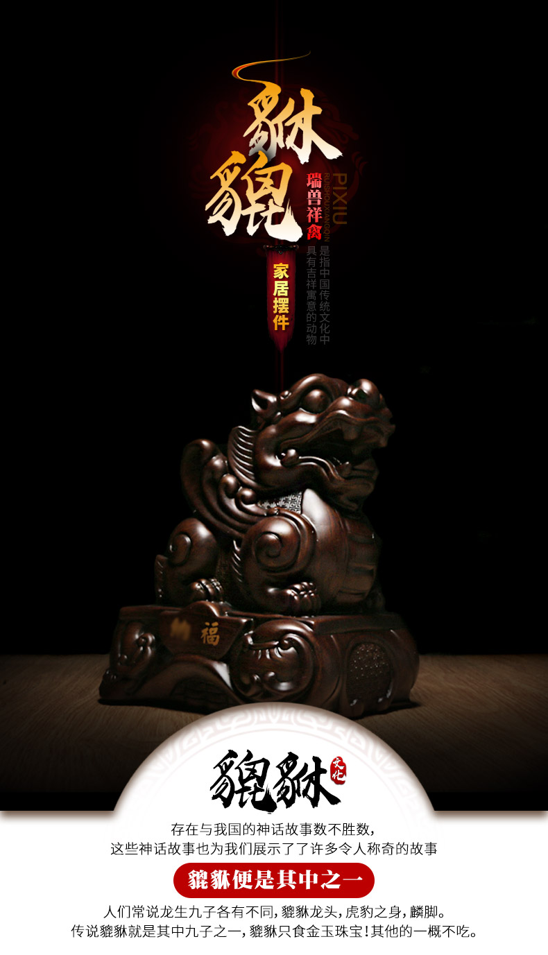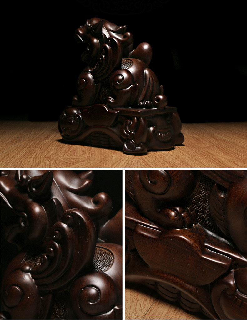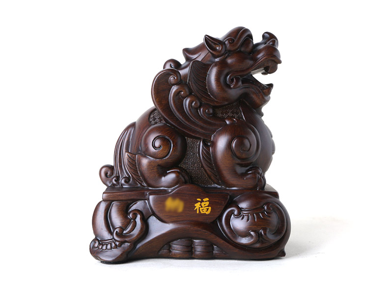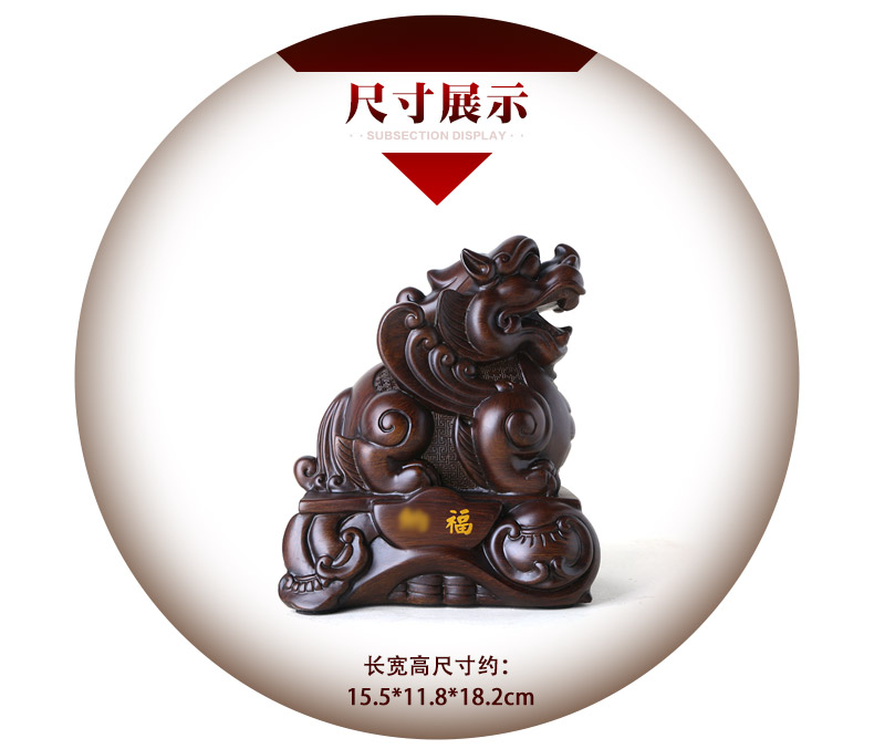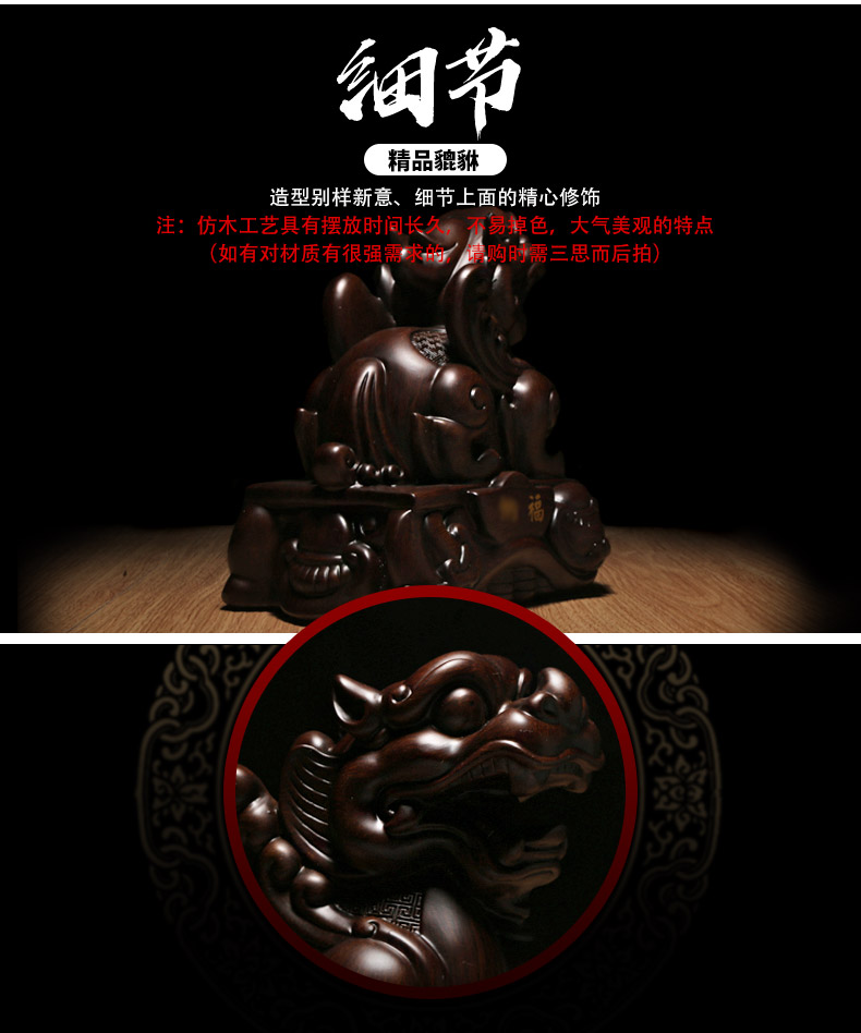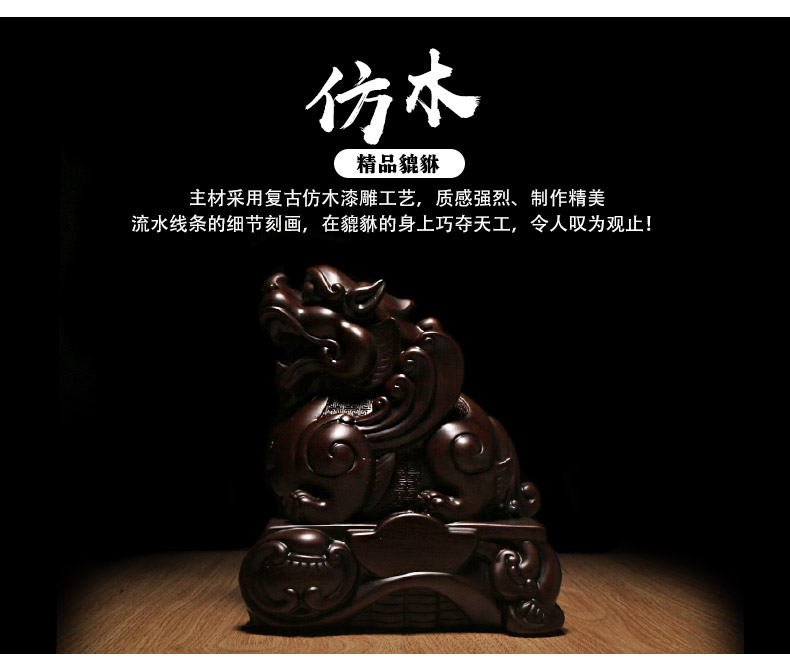 仿木鸿运貔貅摆件★B1款纳福貔貅★树脂棕色皮休家居装饰品工艺品摆设