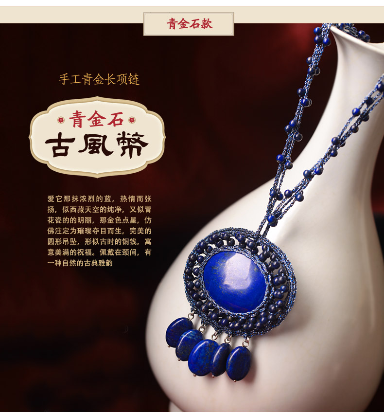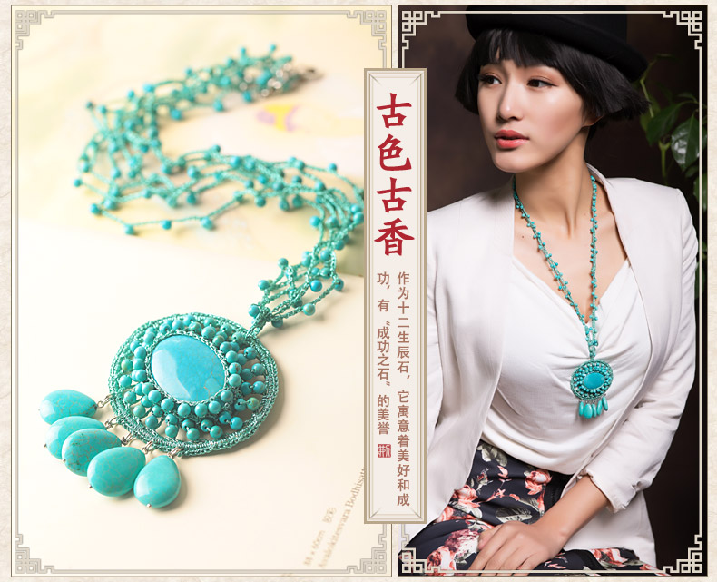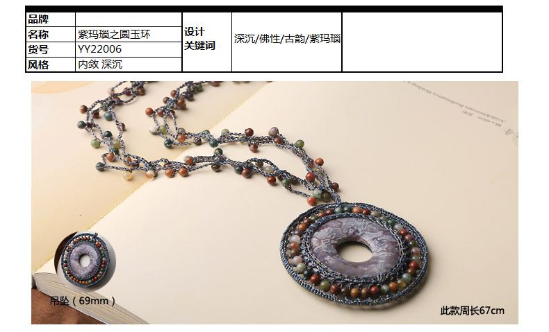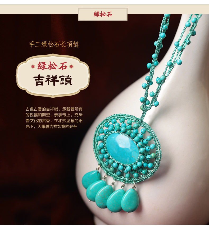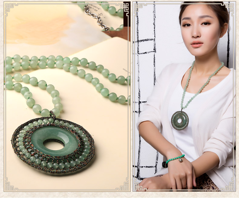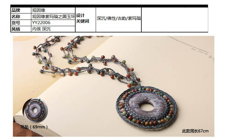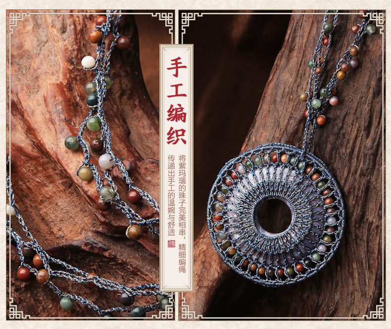 手工编织长款毛衣链★古韵时尚平安扣吊坠