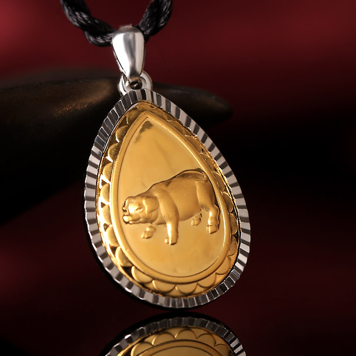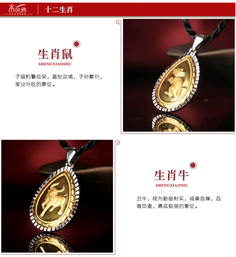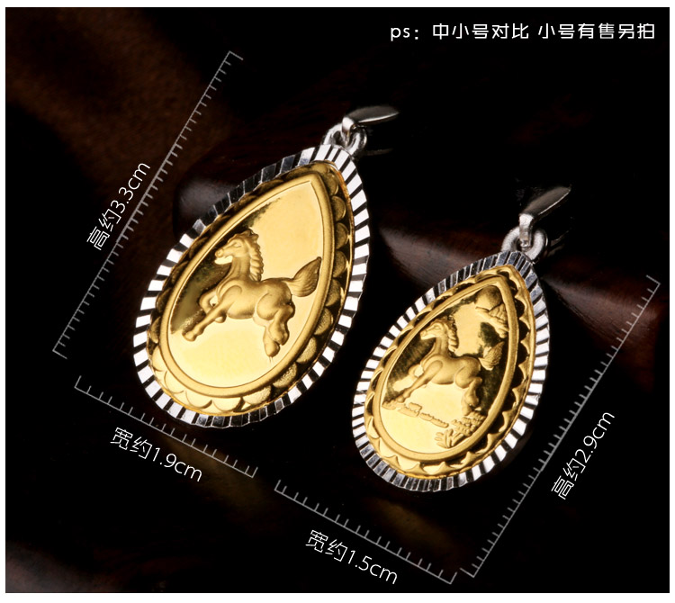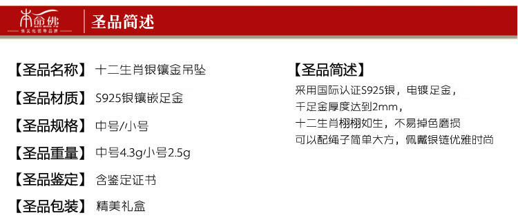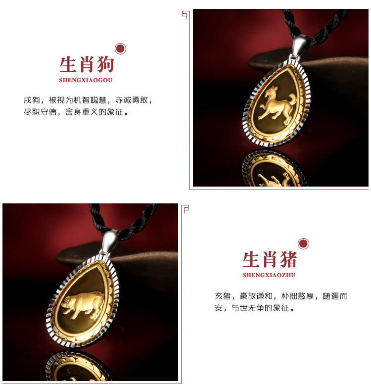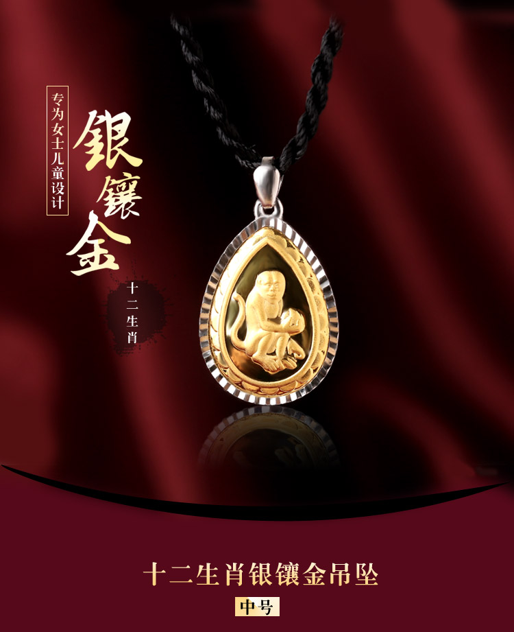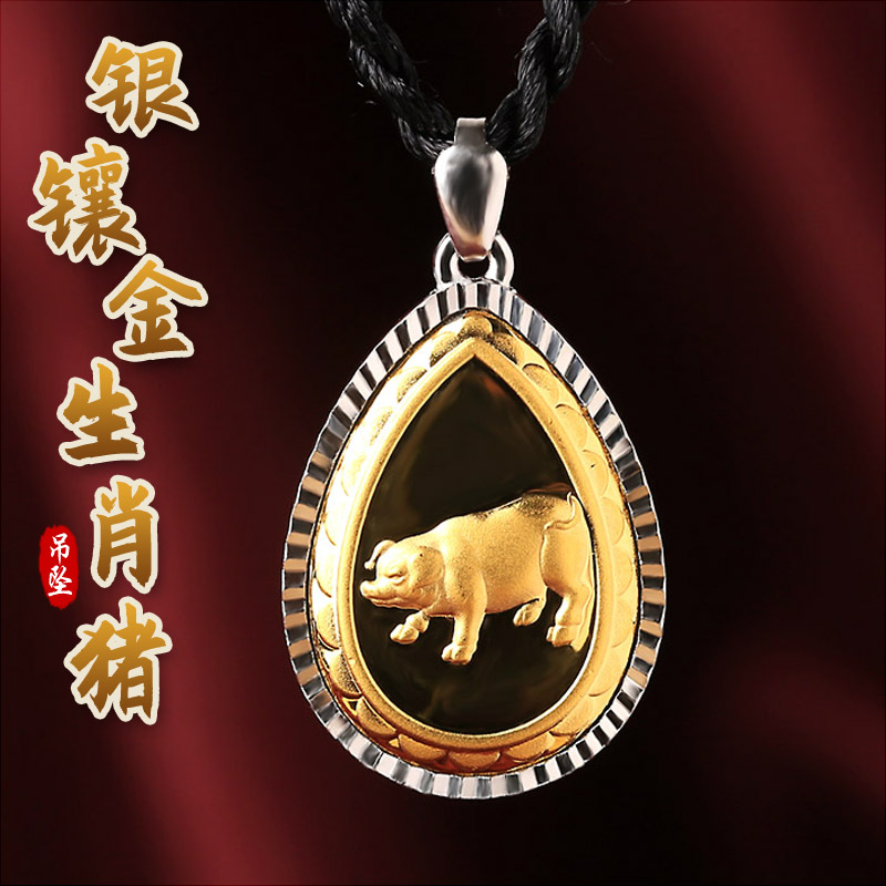 十二生肖银镶金吊坠★时尚足金足银中号生肖猪挂坠