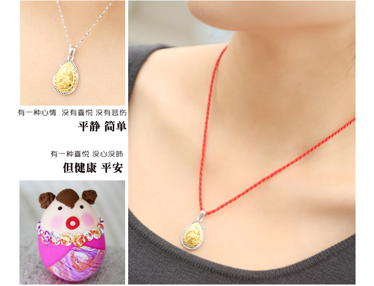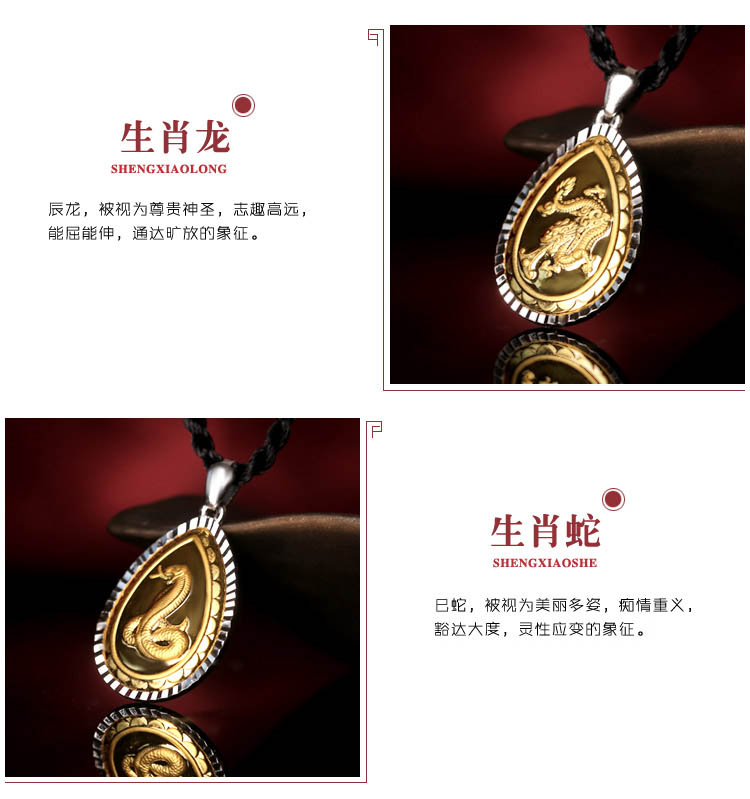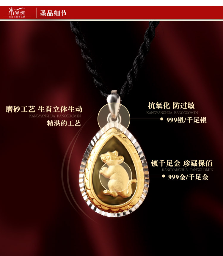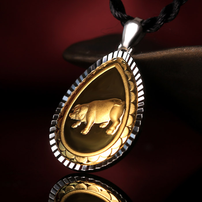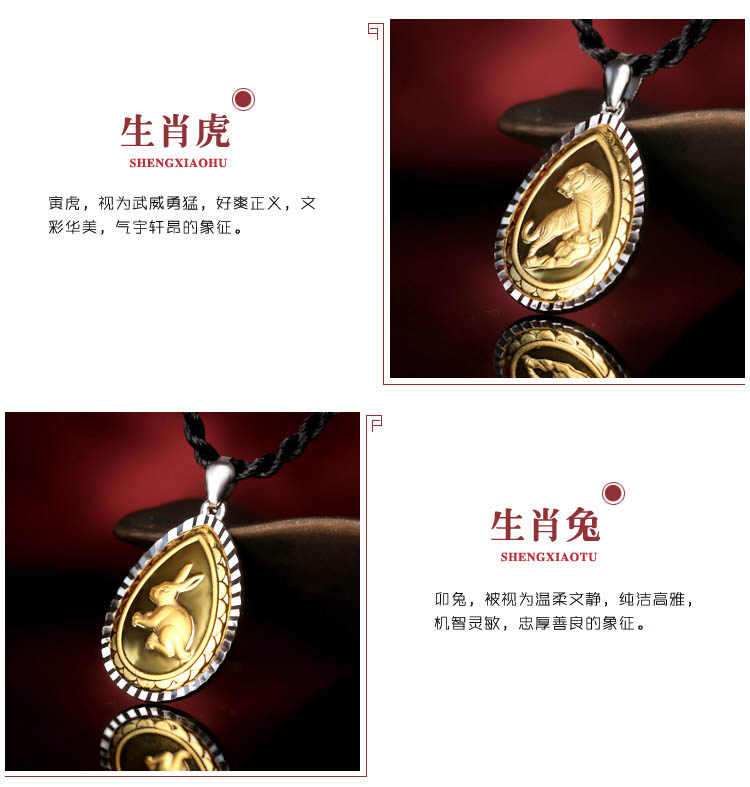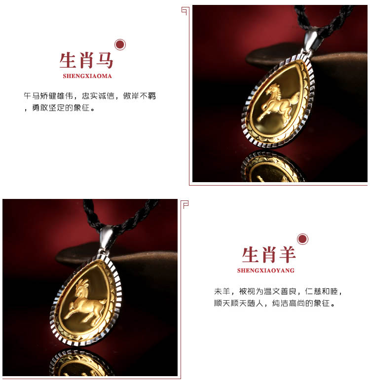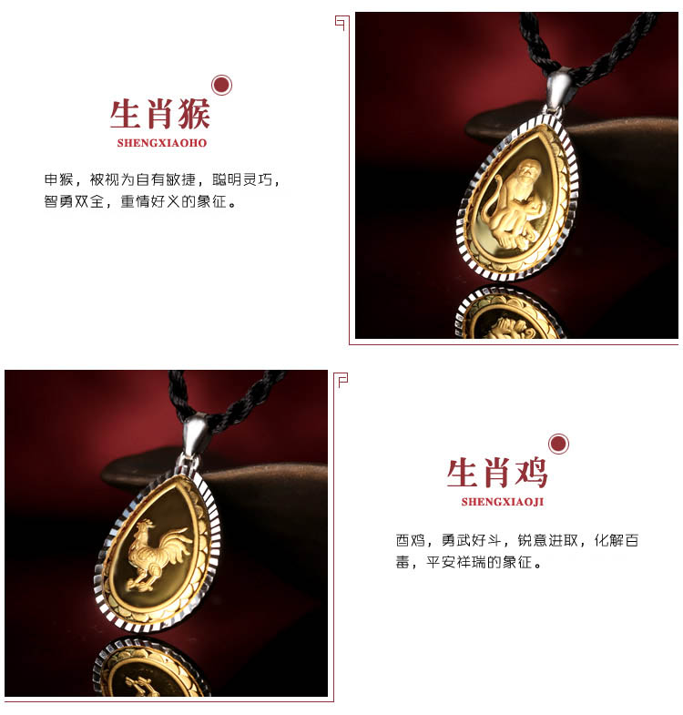 十二生肖银镶金吊坠★时尚足金足银中号生肖猪挂坠