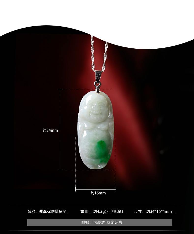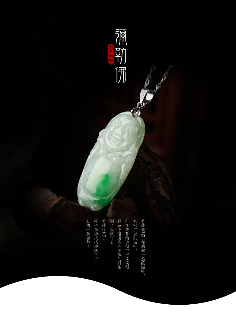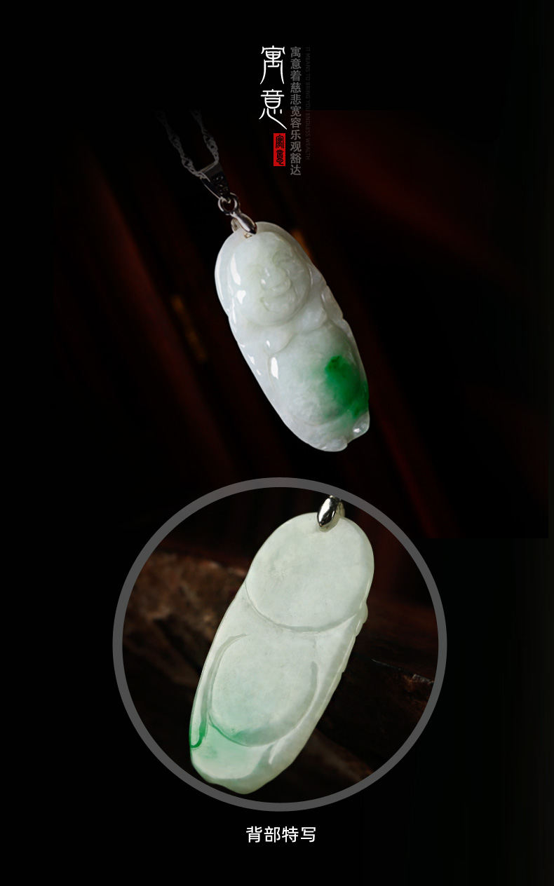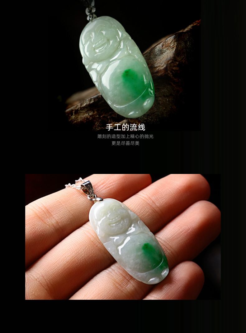 精品豆种翡翠A货弥勒佛吊坠★手工雕大肚佛挂坠
