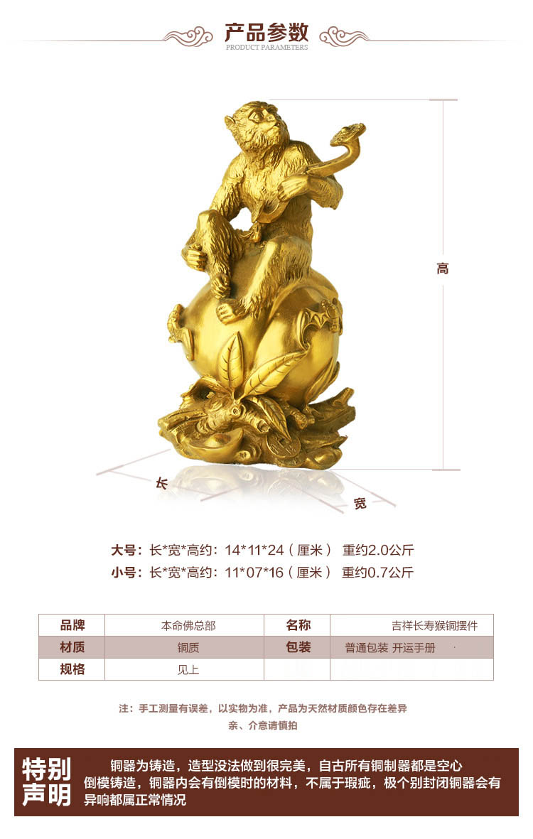 铜器吉祥猴摆件★长寿如意猴家居摆设