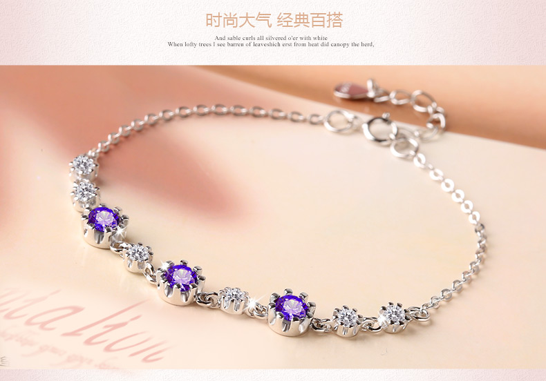 925银公主皇冠款日韩版手链★仿宝石合成锆石时尚手串★个性时尚情人节礼品紫色白色可选
