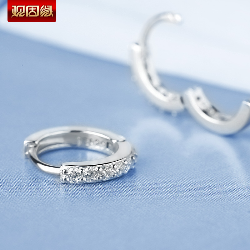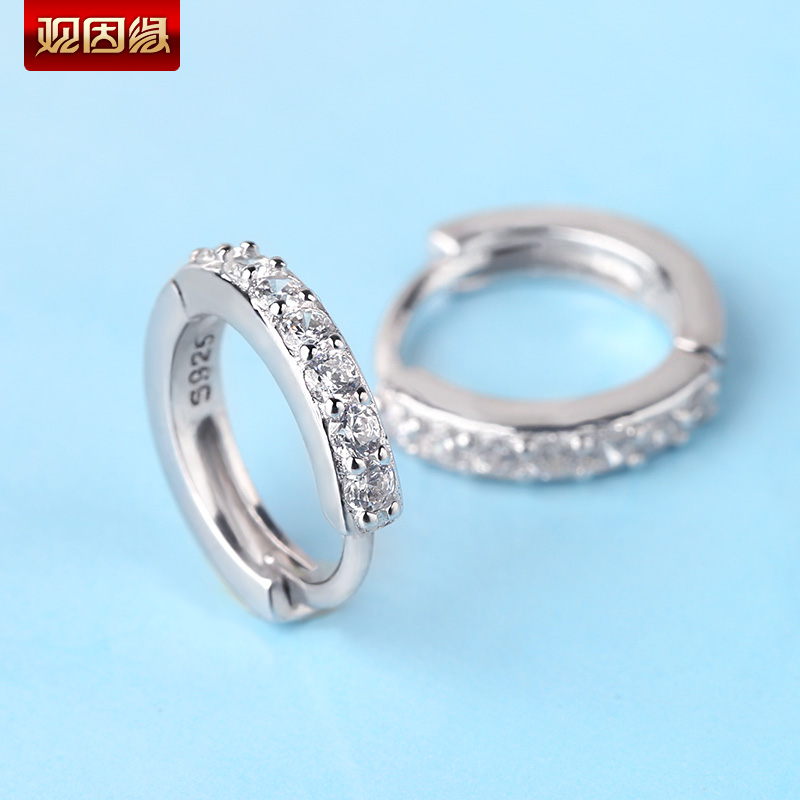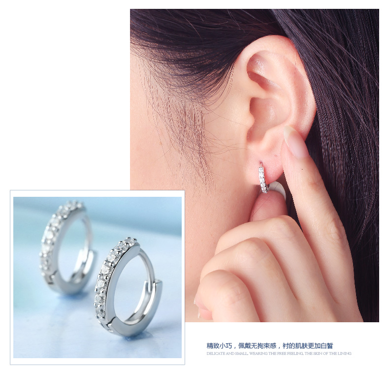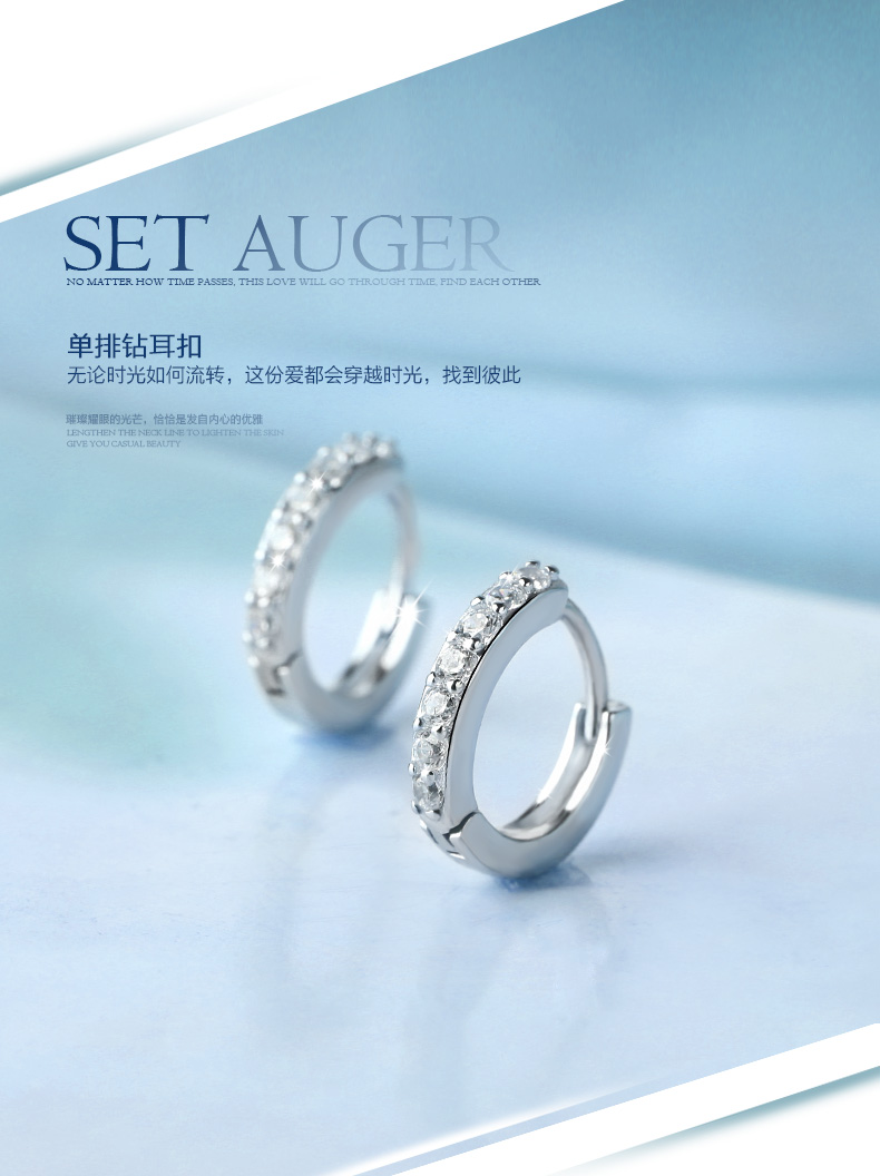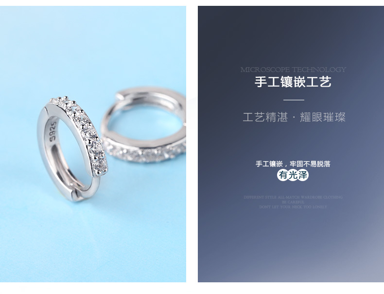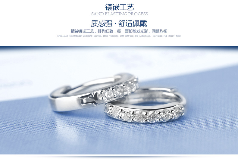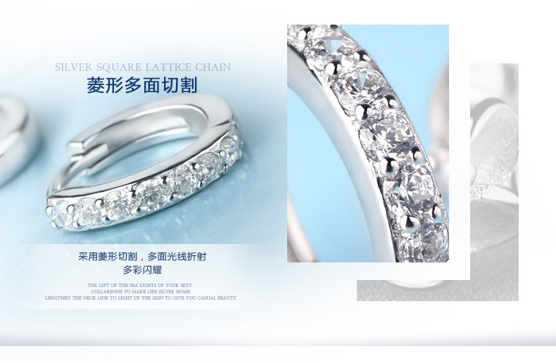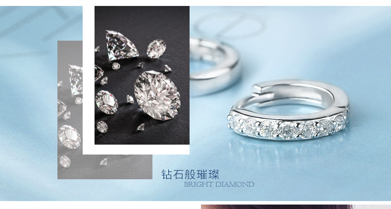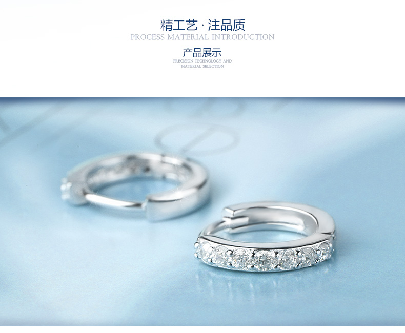 S925银单排钻耳扣★925银单排钻戒指爪镶工艺★梦幻迷人简单之美