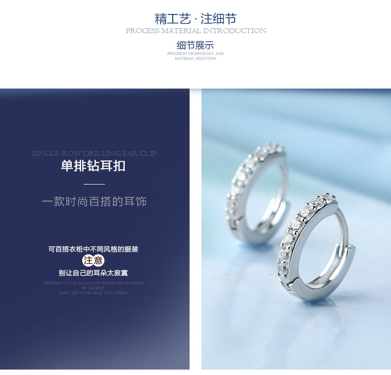 【S925银单排钻耳扣★925银单排钻戒指爪镶工艺★梦幻迷人简单之美】与其它