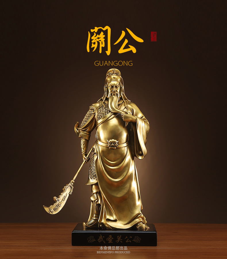 铜质关公武财神摆件★黄铜九龙关公办公室家居吉祥风水摆设