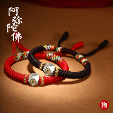 属狗人本命佛阿弥陀佛手绳★十二生肖手链银男女款本命年红绳端午节五彩绳
