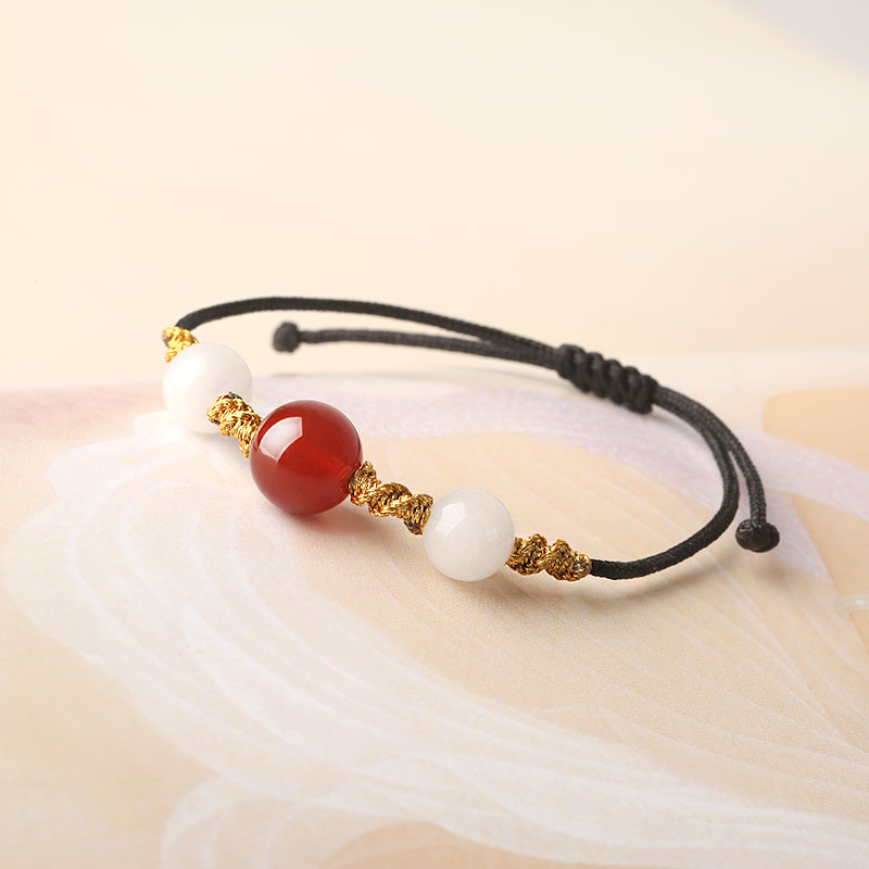 黑玛瑙红玛瑙红豆手链★女款相思豆隔珠饰品情侣散珠手串★闺蜜情侣手工编织手绳