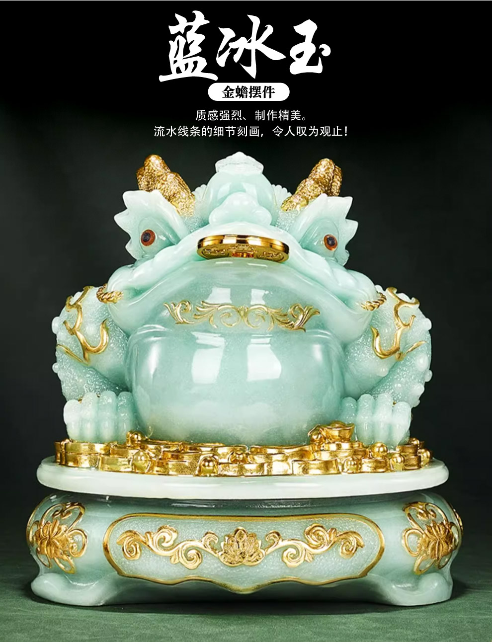 蓝冰玉三足秘法九转乾坤金蟾摆件★蓝色三足蟾蜍蛤蟆★店铺开业乔迁搬家礼品家居办公室装饰品