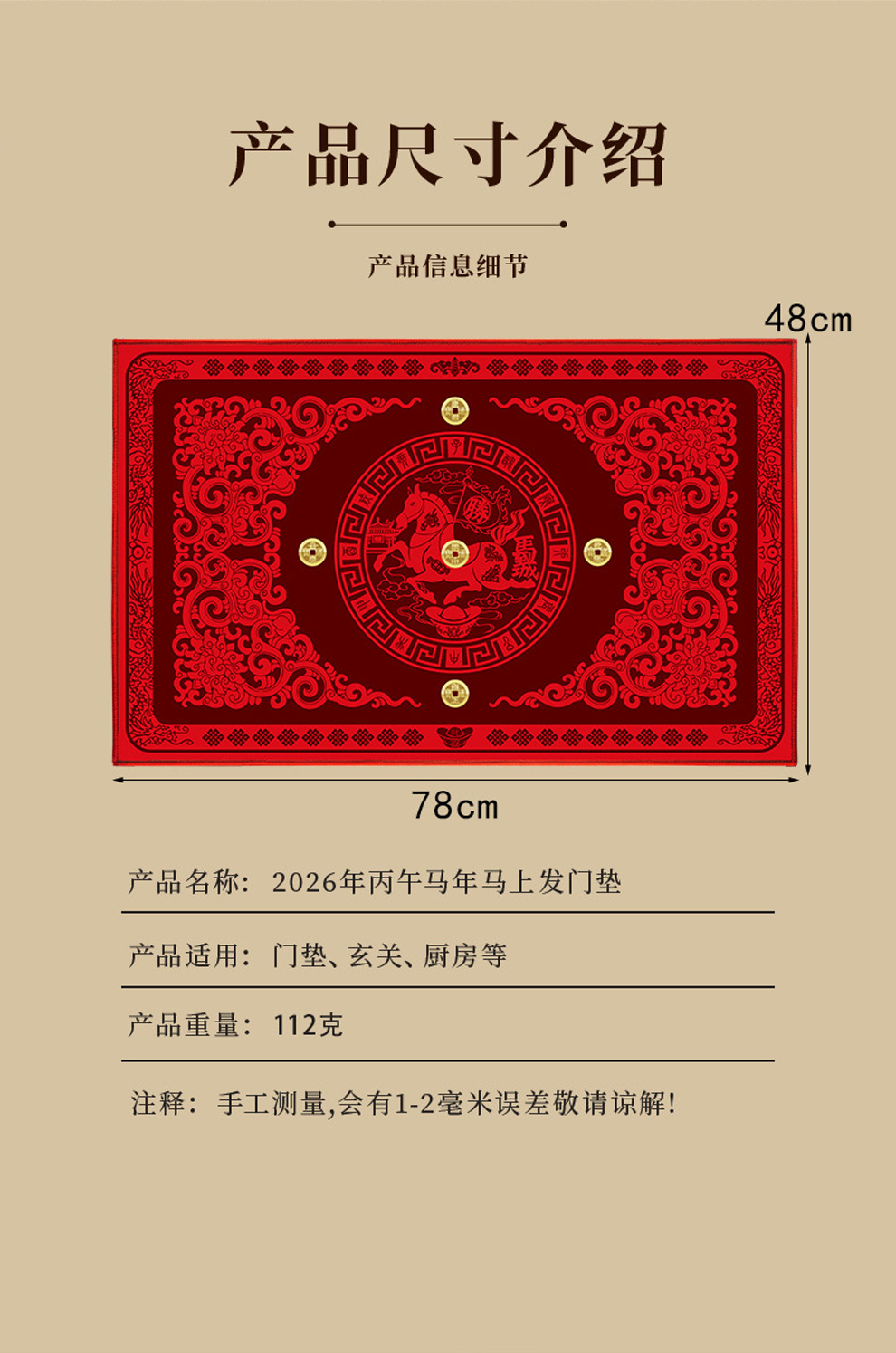 2026丙午马年新款门垫马上发真铜钱地垫★防滑地垫脚垫