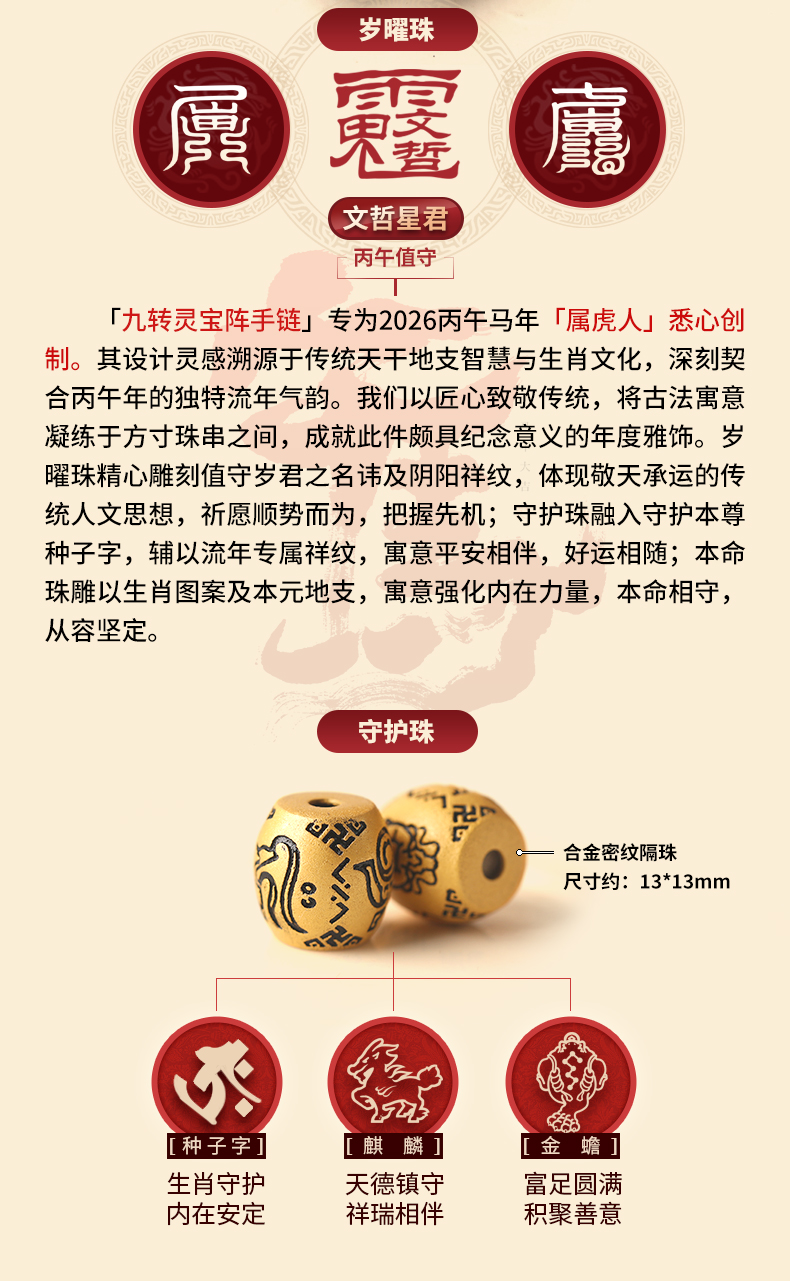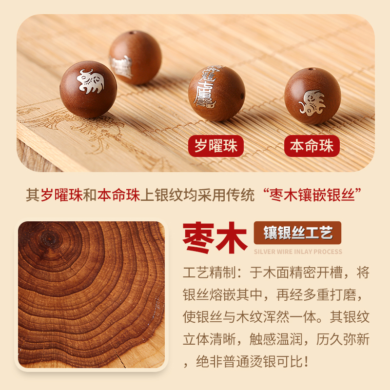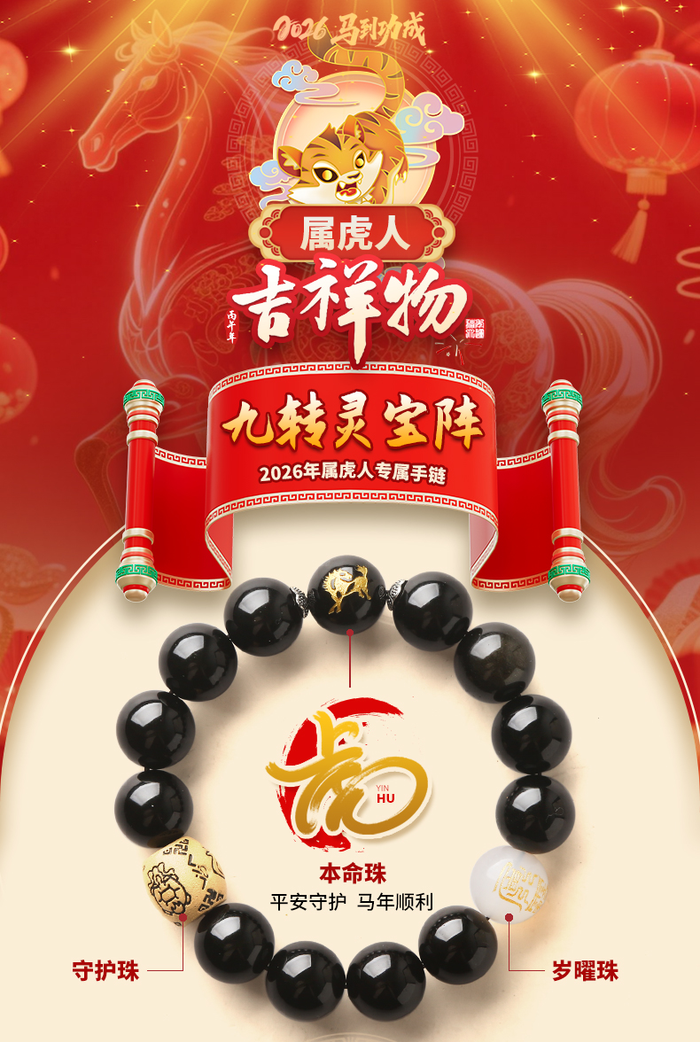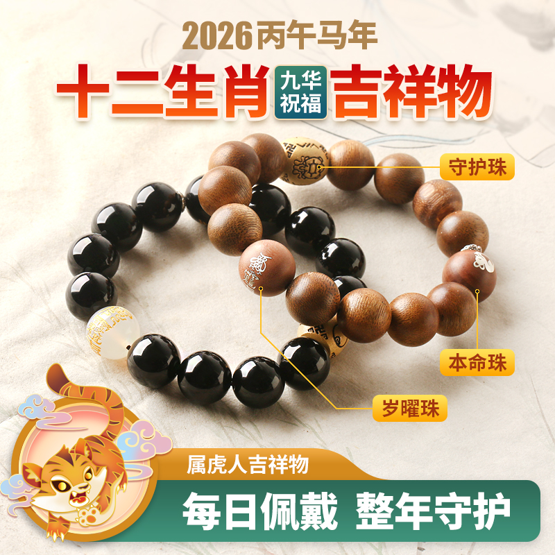 属虎人2026年马年生肖吉祥物手链男款★九转灵宝阵★黑玛瑙茶晶沉香紫檀木多款本命年犯太岁