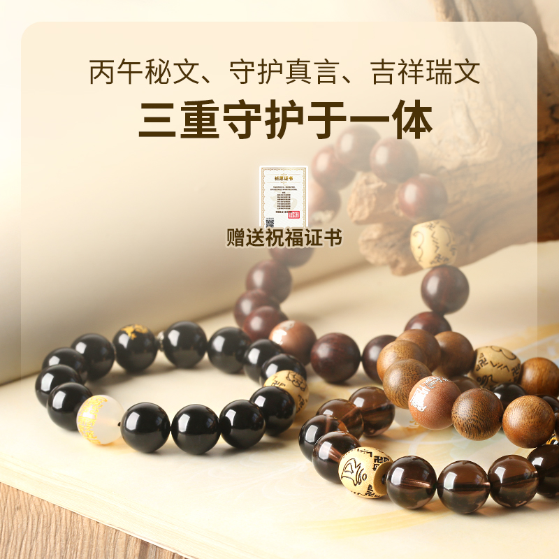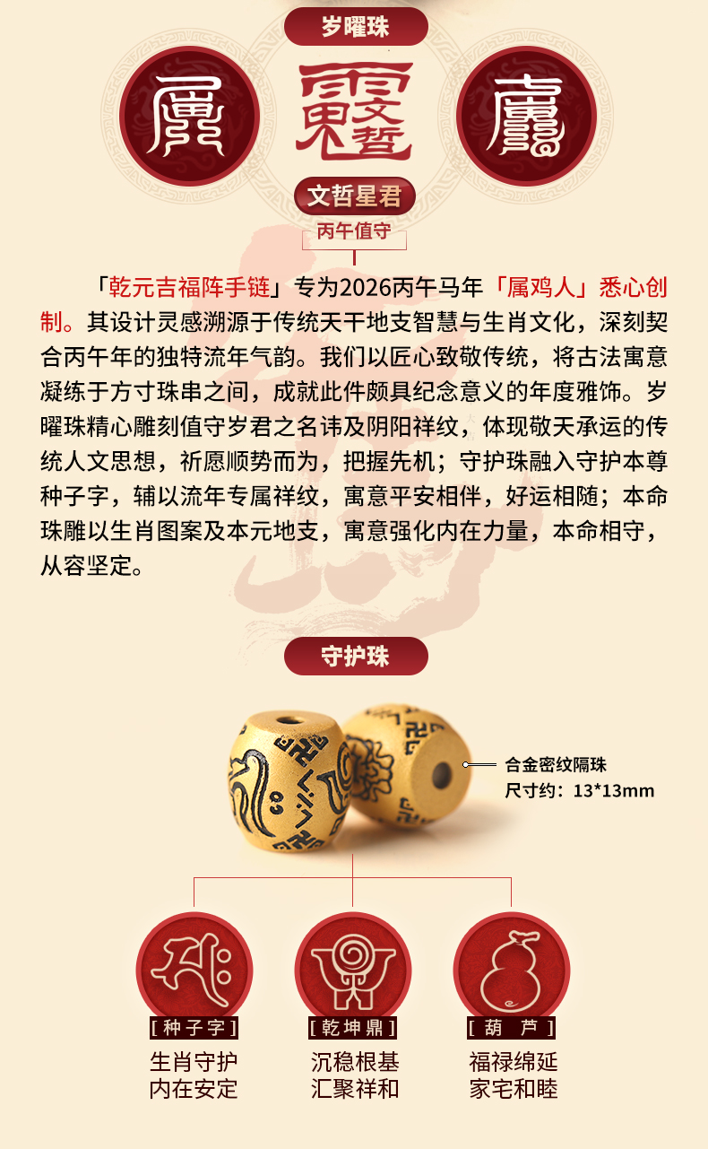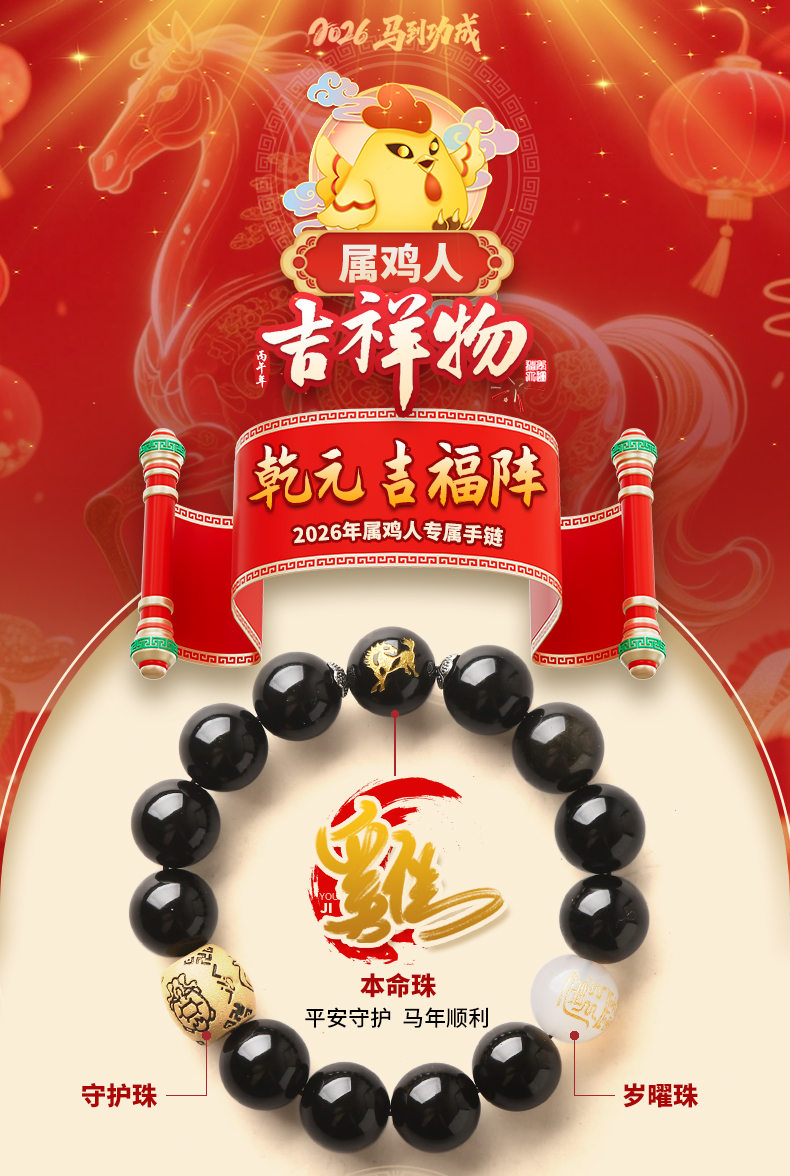 属鸡人2026年马年生肖吉祥物手链男款★乾元吉福阵★黑玛瑙茶晶沉香紫檀木多款本命年犯太岁