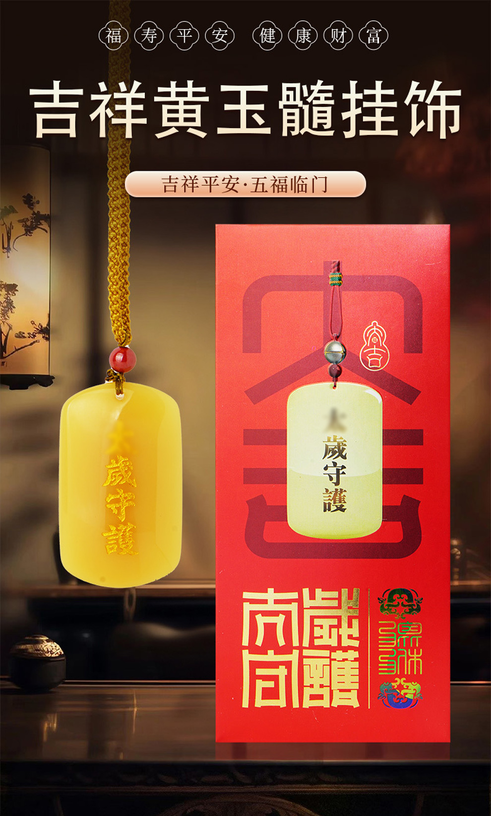 2026年黄玉髓吊坠挂饰★泰岁考试万福随行吉运财富吊坠