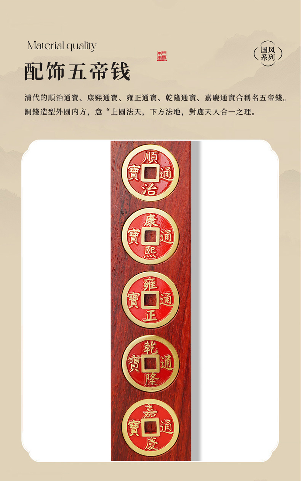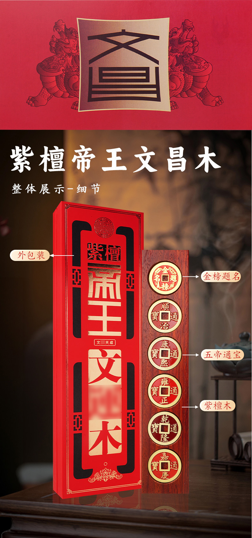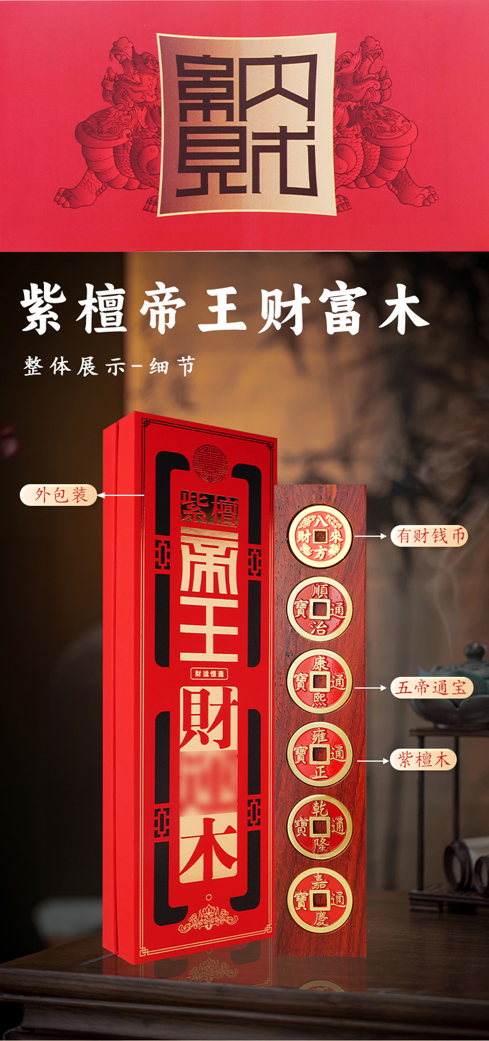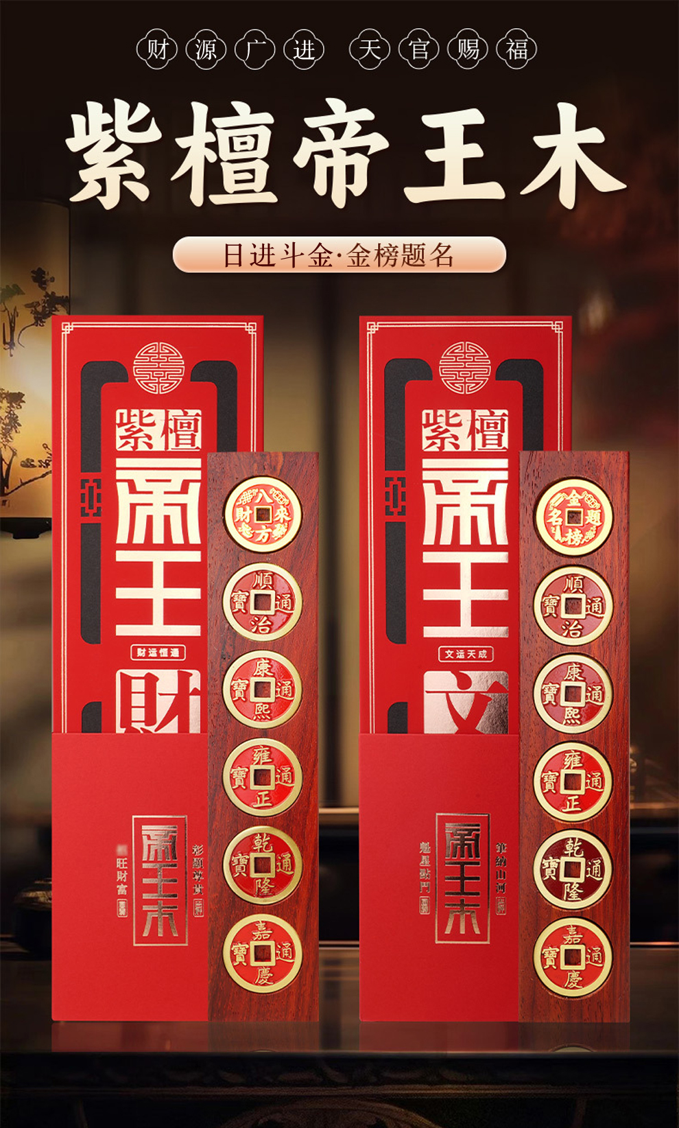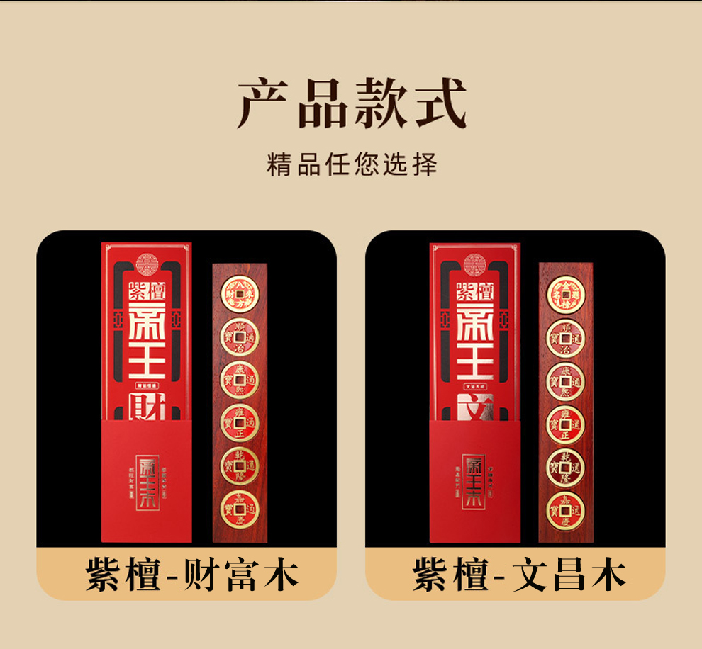 紫檀帝王木财富文昌五帝钱摆件★家居玄关客厅风水装饰摆设摆件