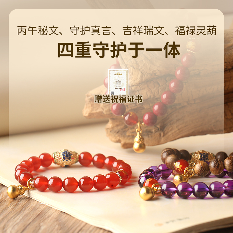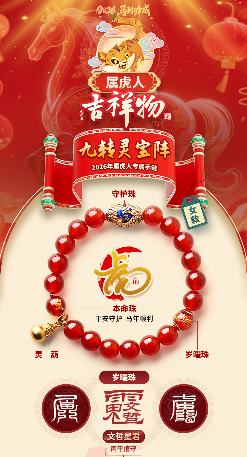 属虎人2026年马年生肖吉祥物手链女款★九转灵宝阵★红玛瑙紫水晶朱砂沉香多款本命年犯太岁