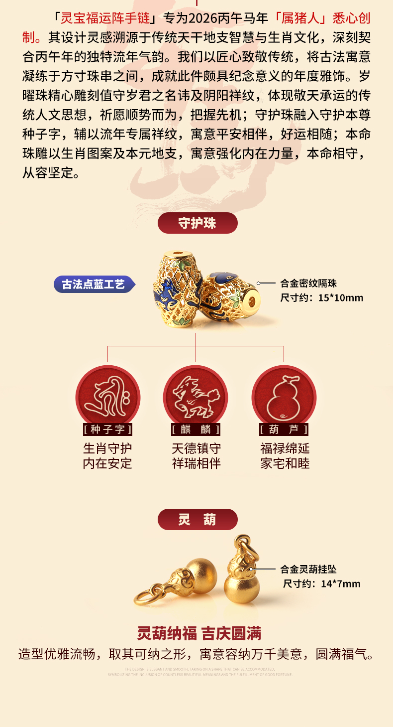 属猪人2026年马年生肖吉祥物手链女款★灵宝福运阵★红玛瑙紫水晶朱砂沉香多款本命年犯太岁