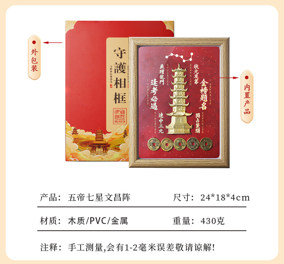 2026丙午马年文昌七星五帝家居装饰★木质相框桌面摆件