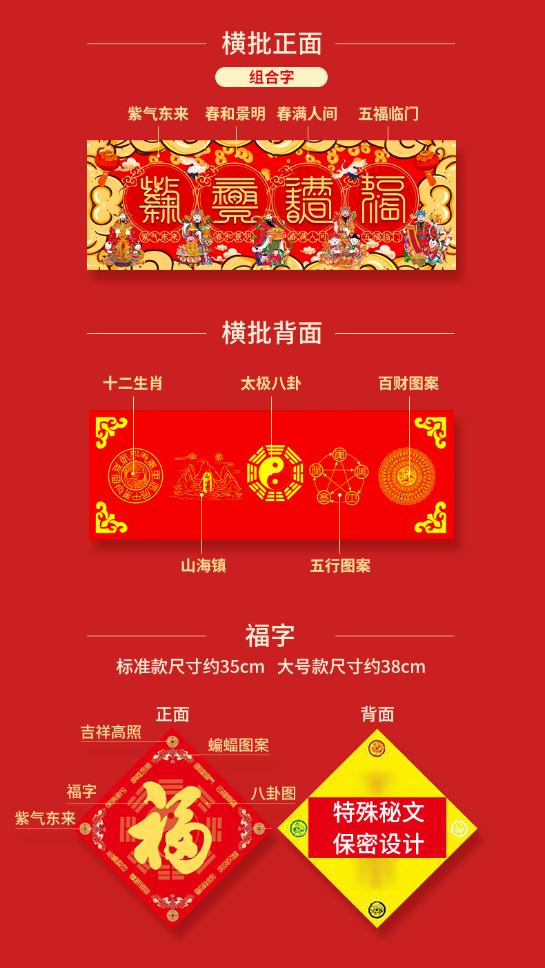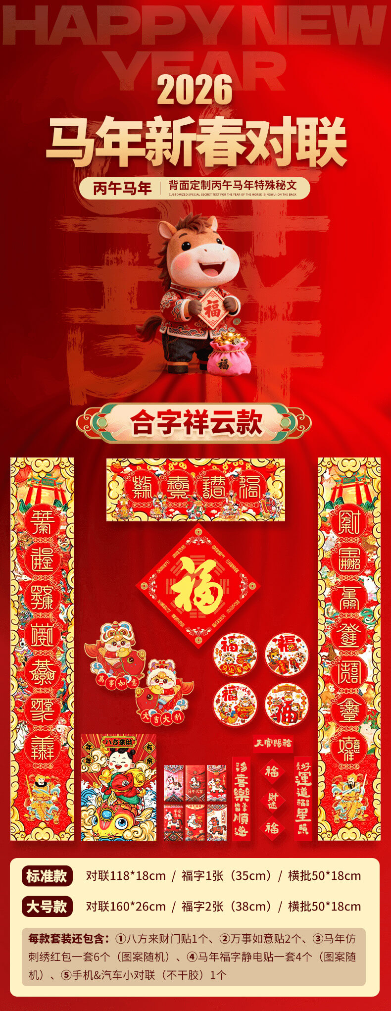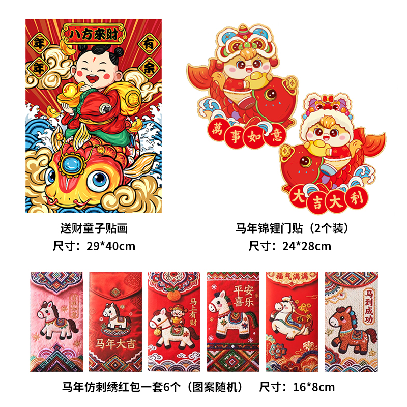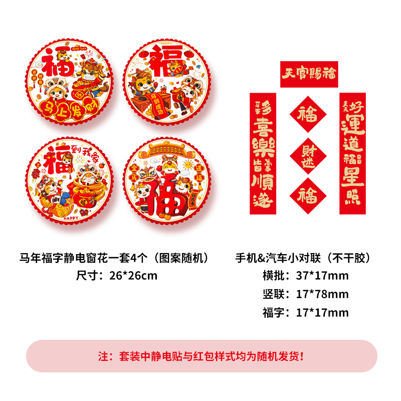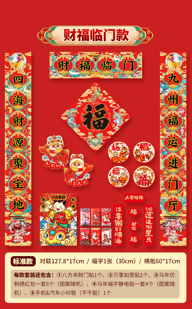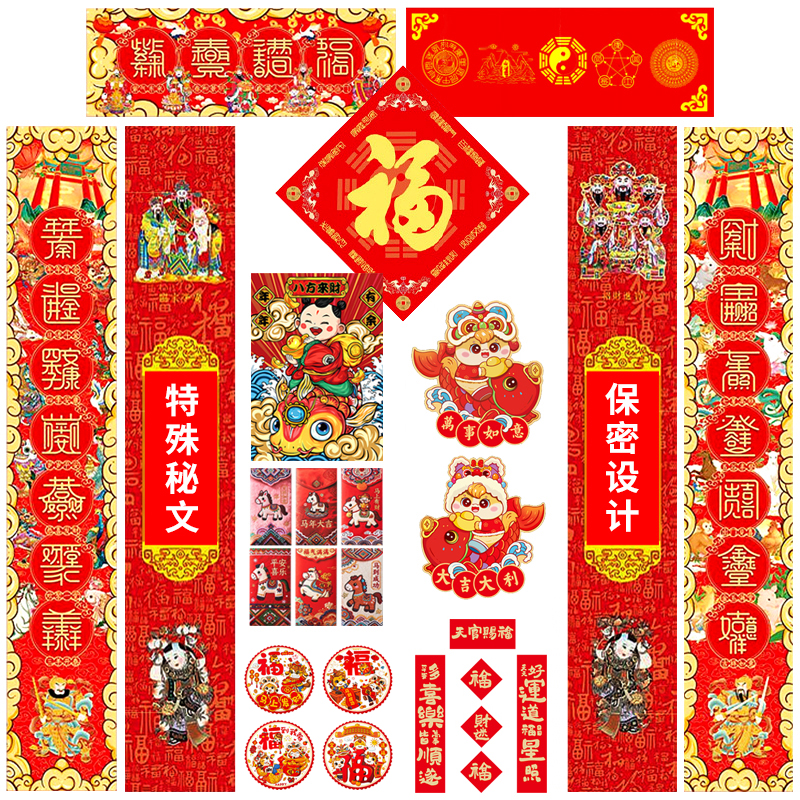 2026丙午马年春节对联春联★背面特殊秘文★新年福字财神门神窗花红包套装送背胶