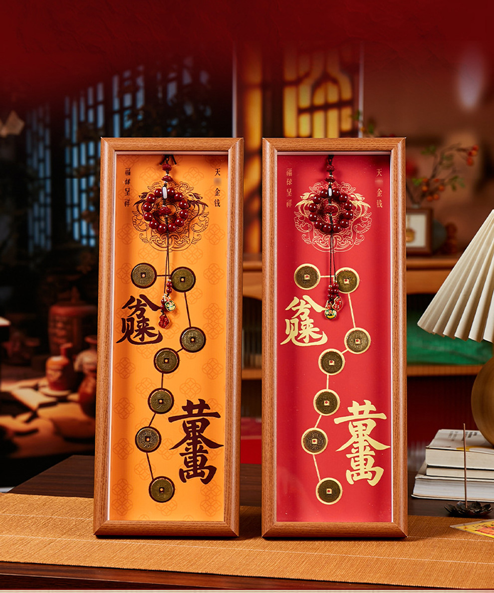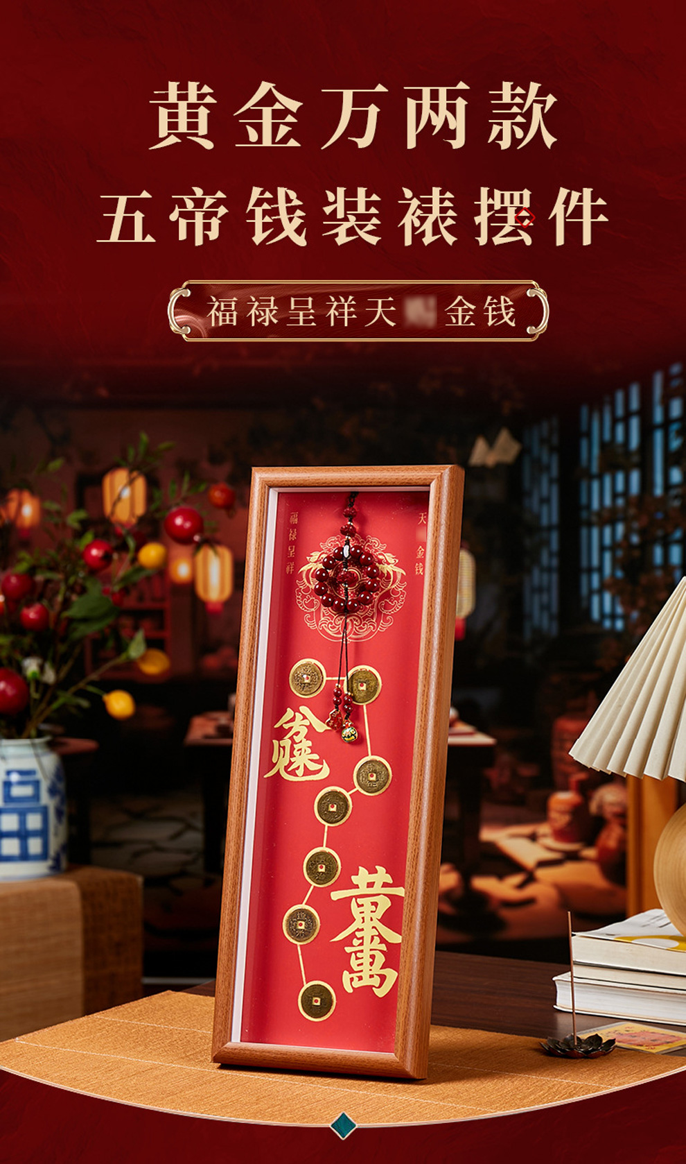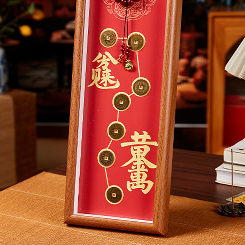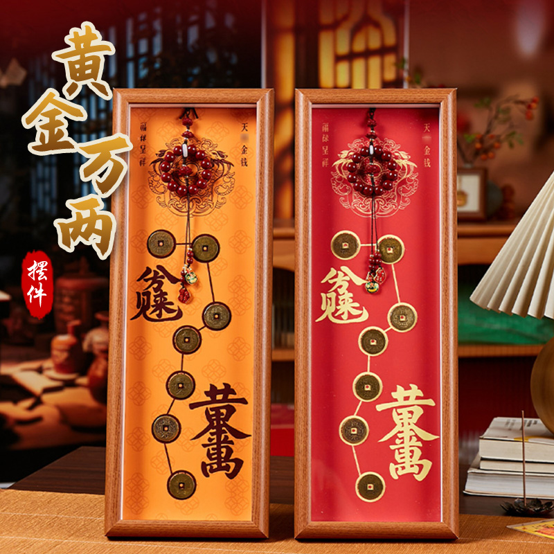 2026丙午马年七星帝钱财库日进斗金黄金万两摆件★财富木质相框桌面摆件
