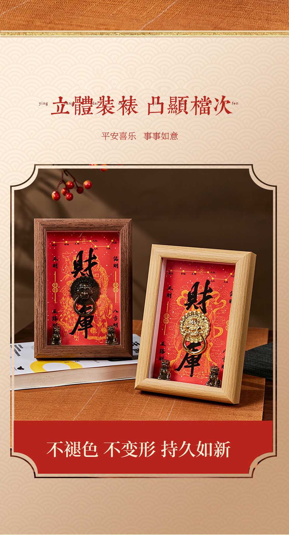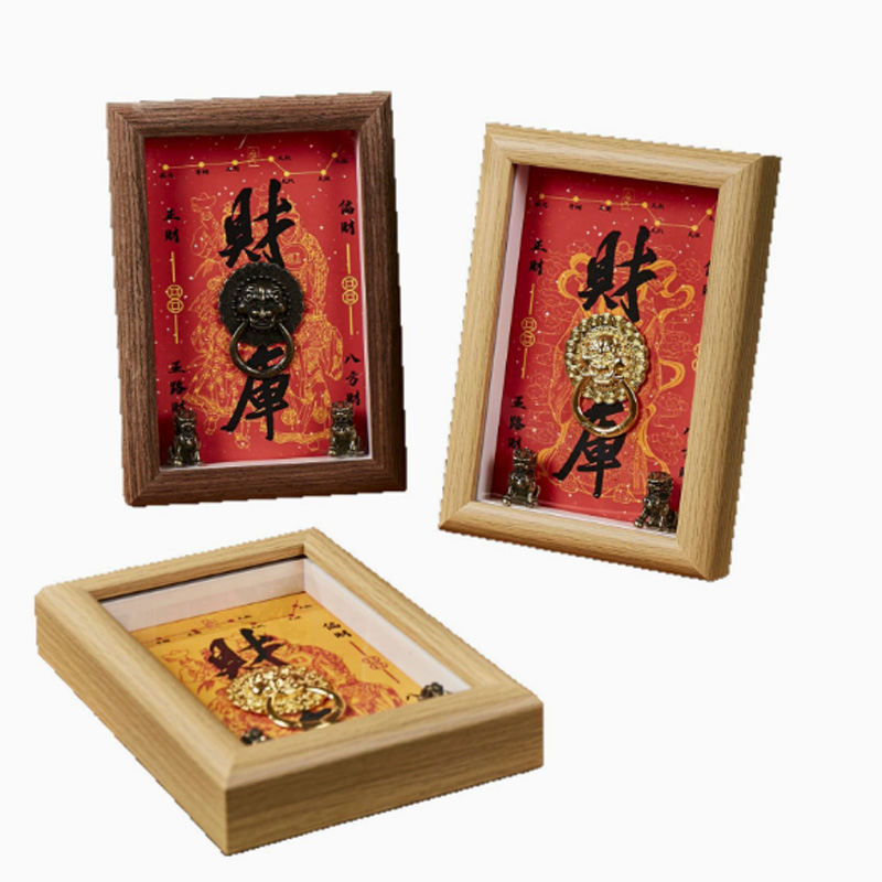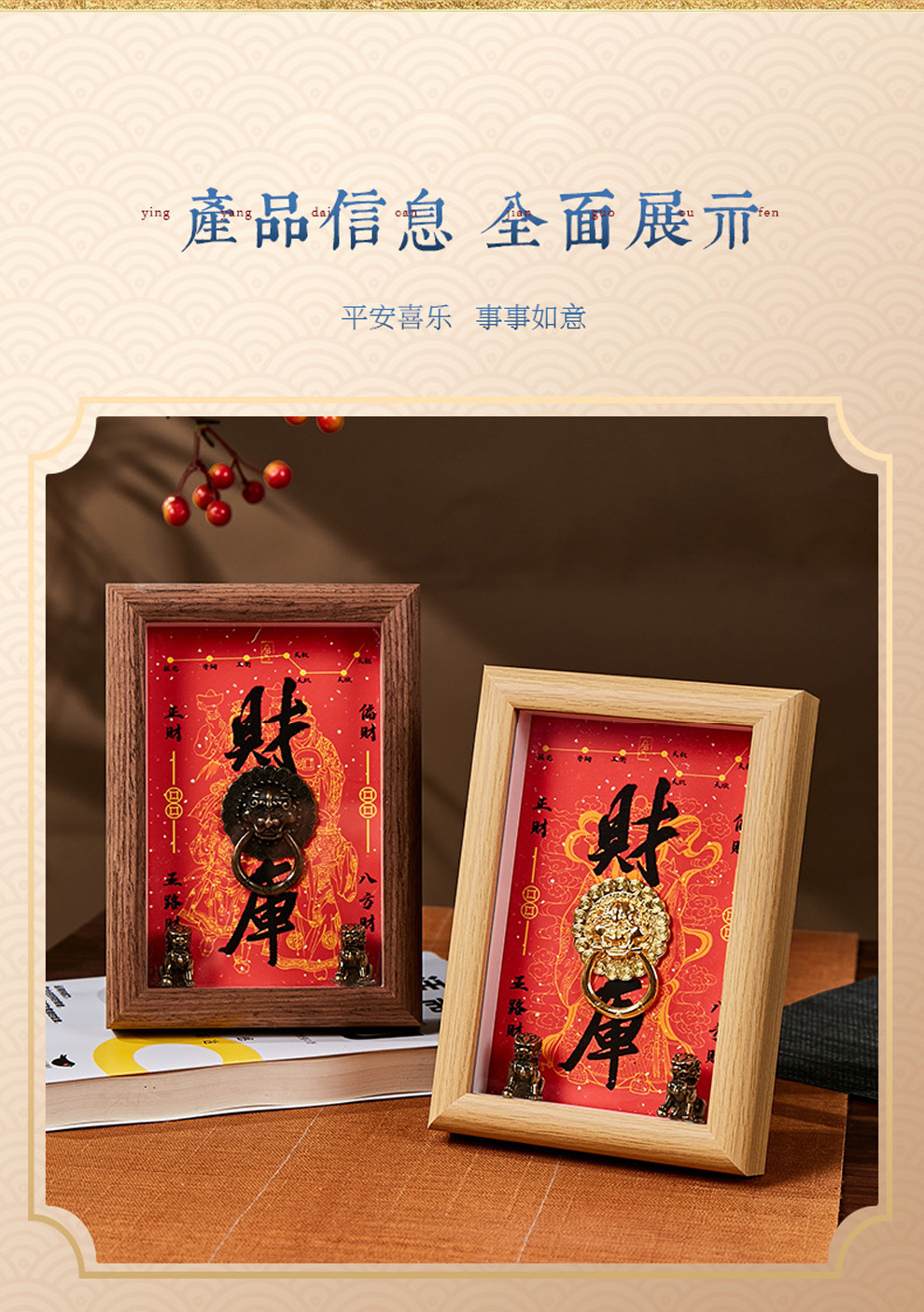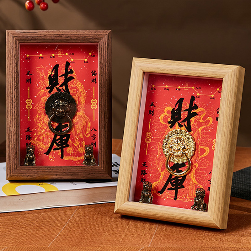 2026马年新品新年开财库财富门环狮子家居装饰摆件★木质相框桌面摆件