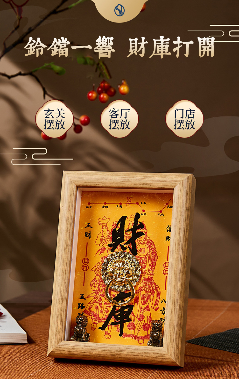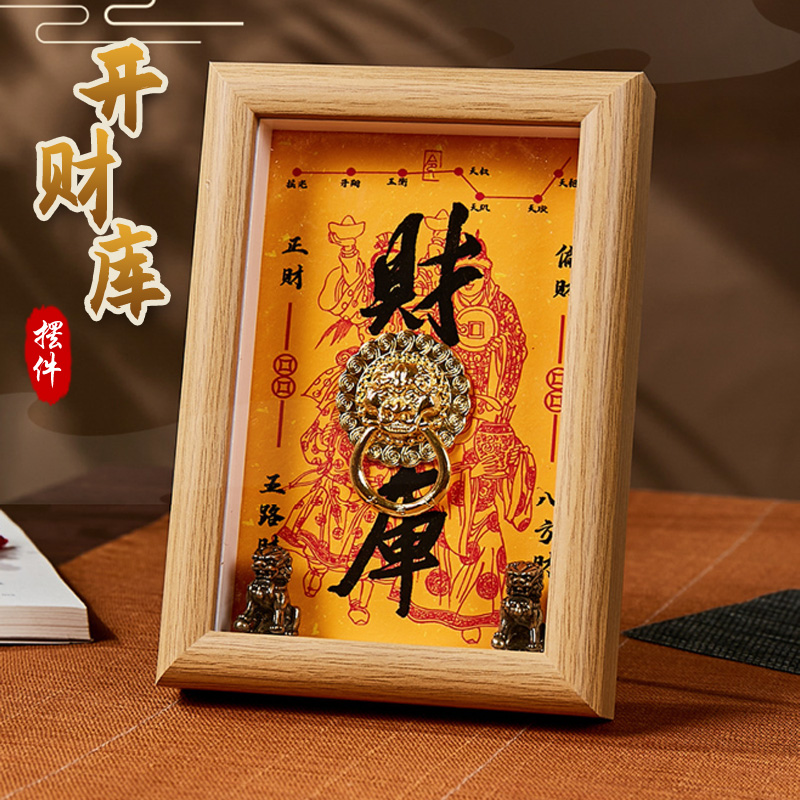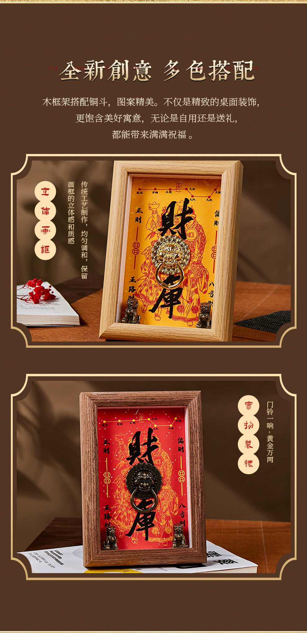 2026马年新品新年开财库财富门环狮子家居装饰摆件★木质相框桌面摆件