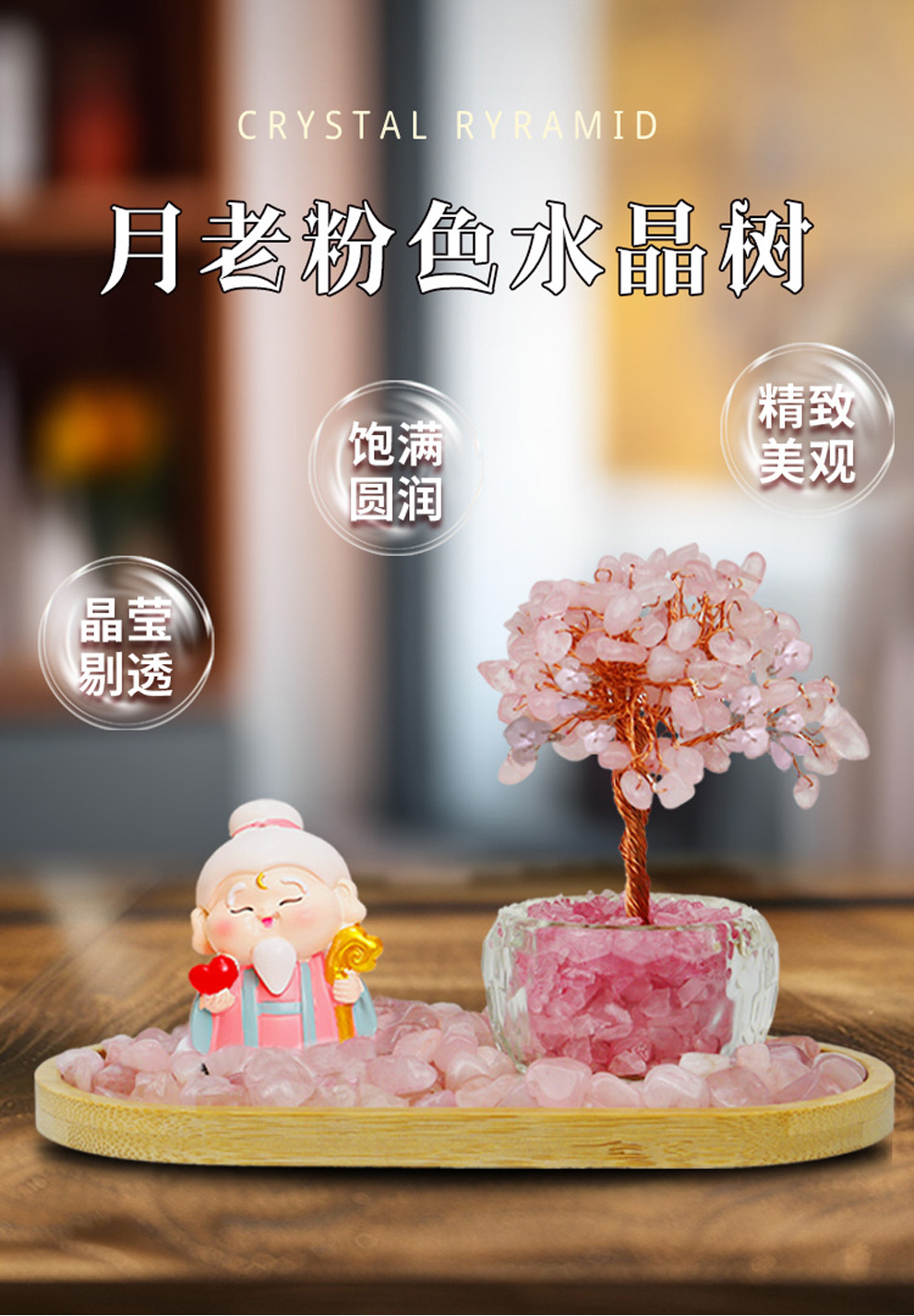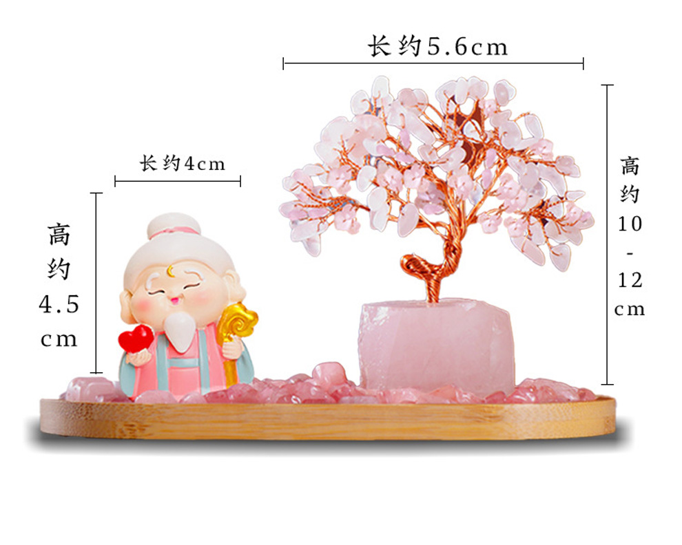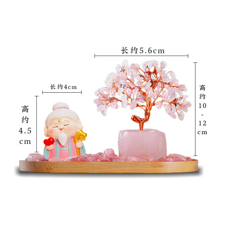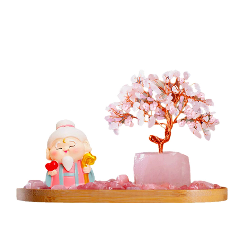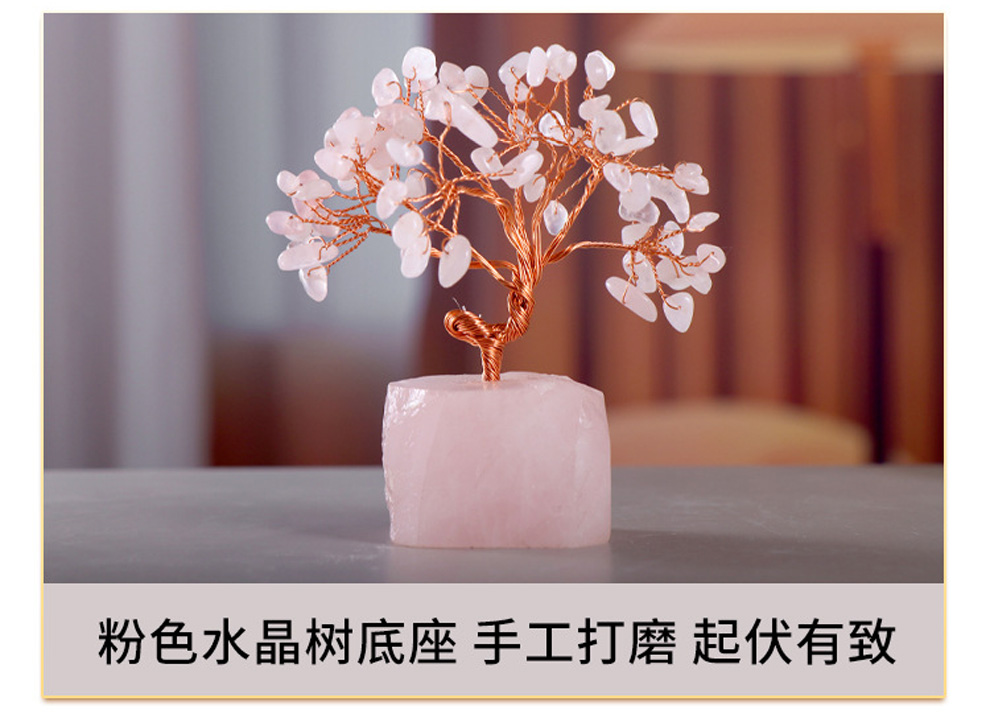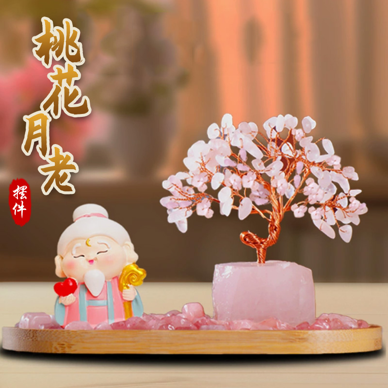 马年新品粉水晶月老财富水晶树发财树爱情桃花创意摆件★家居办公室办公桌工位玄关装饰品