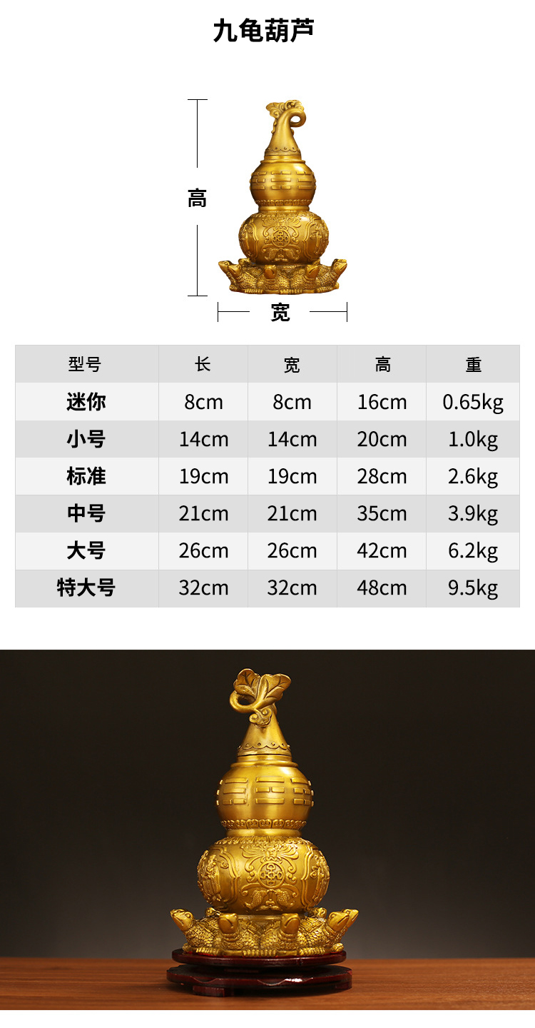 马年新品黄铜九龟天医百解宝运葫芦摆件★新年化太岁五黄二黑家居办公室装饰品