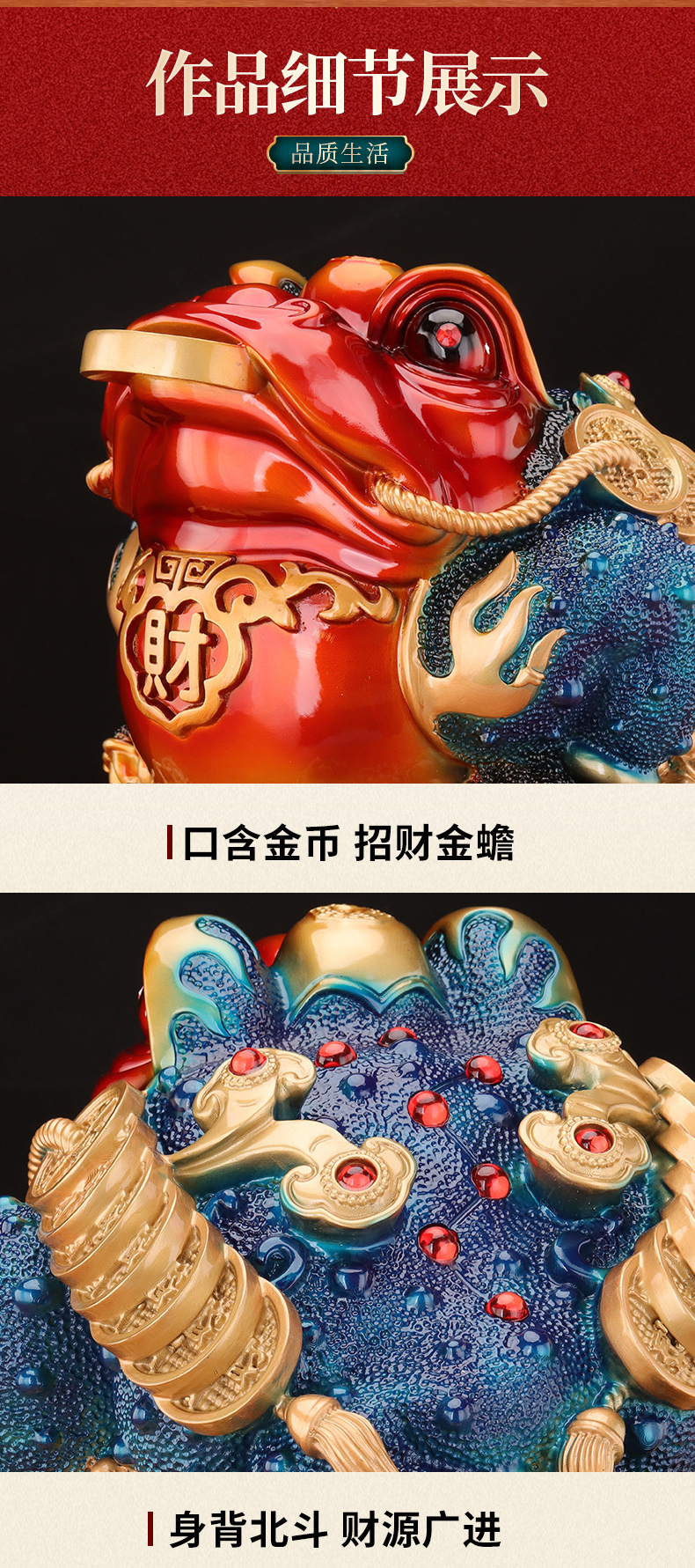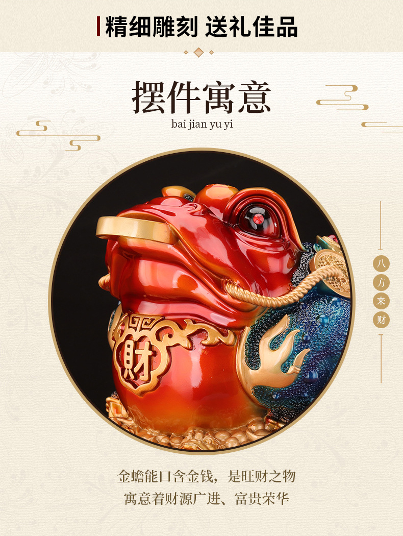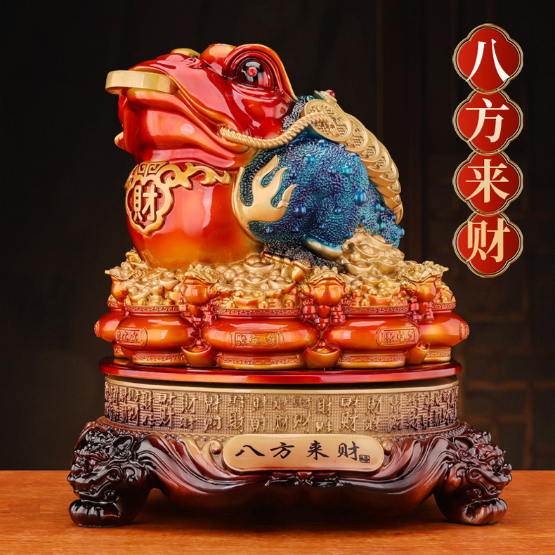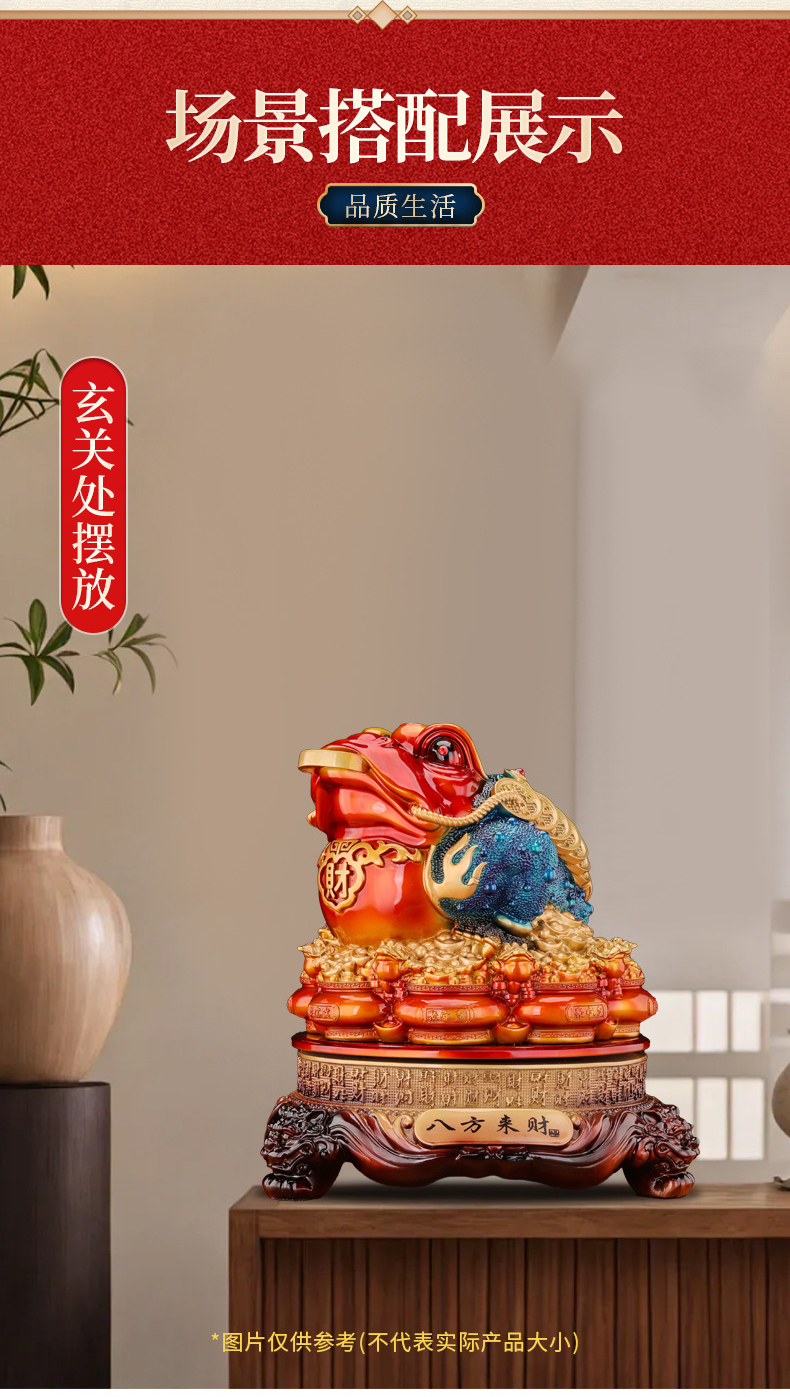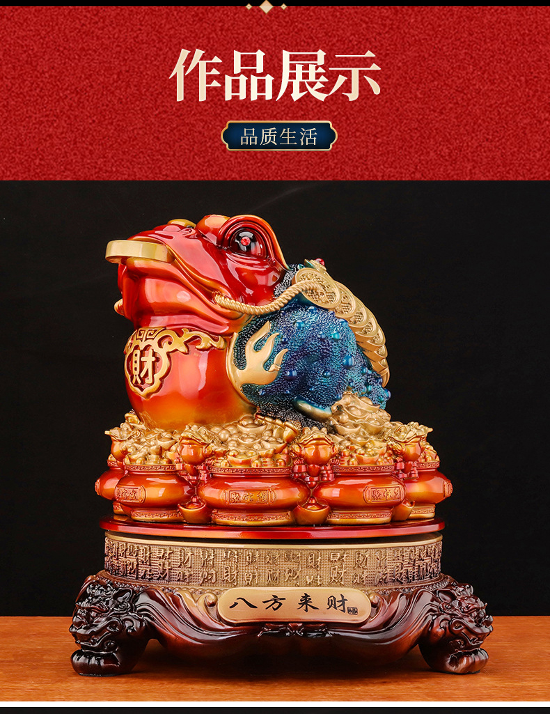 马年新品红色鸿运金蟾摆件★八方来财聚宝盆蟾蜍办公室店铺前台玄关客厅装饰开业礼品