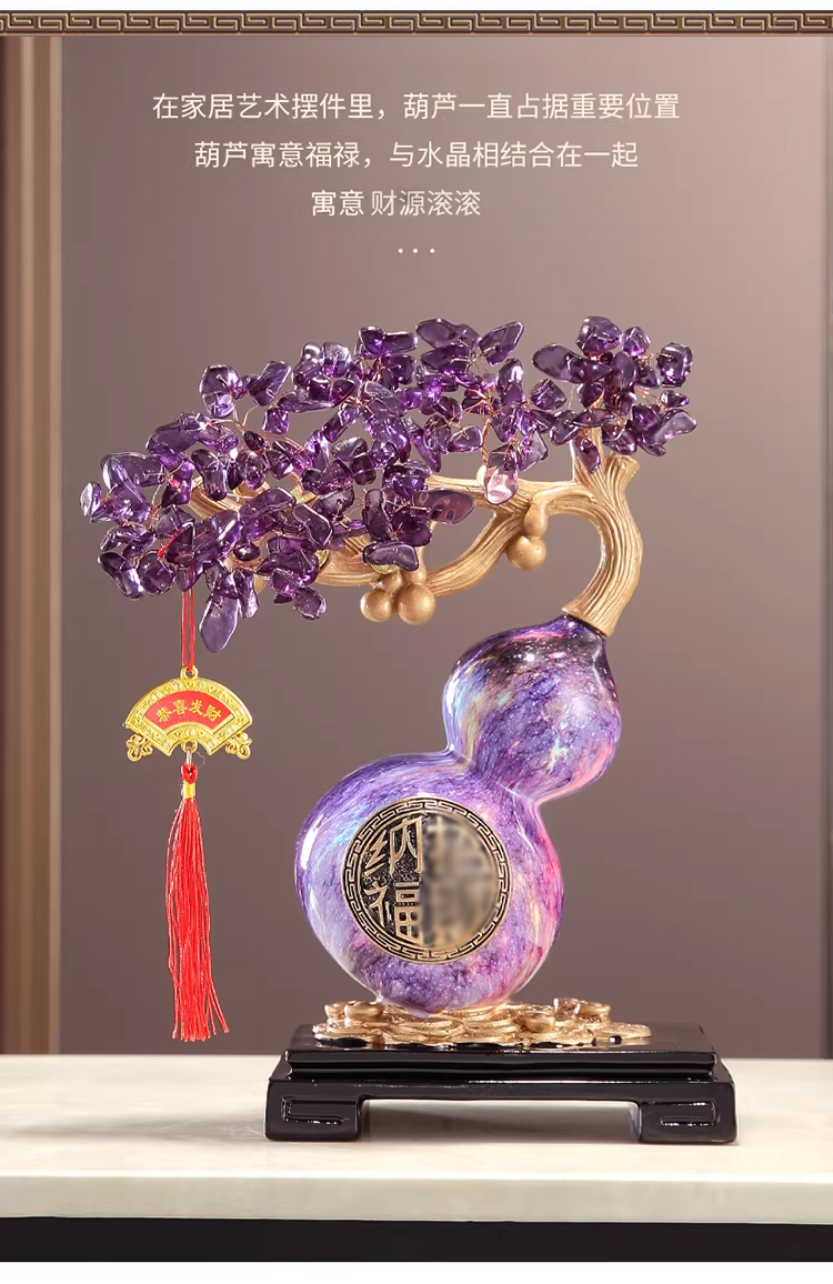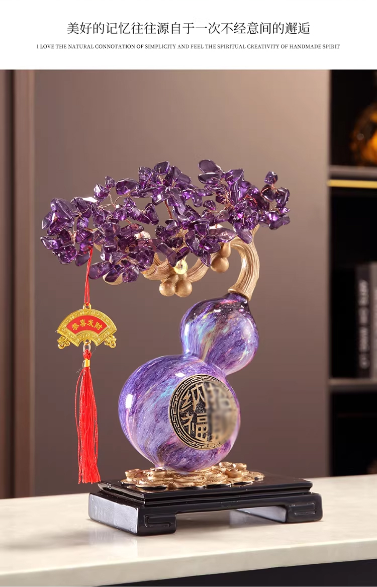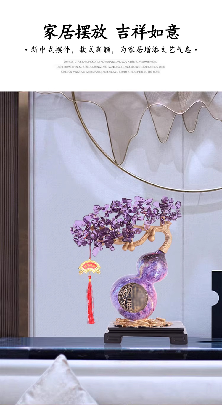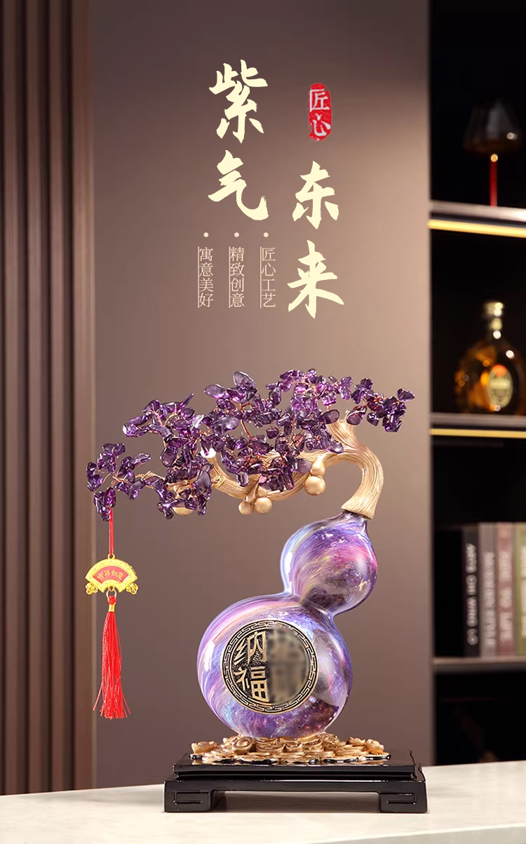 马年新品紫气东来葫芦水晶树紫水晶聚宝盆发财树摆件★客厅装饰品开业礼物搬家乔迁新居礼品
