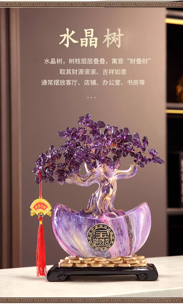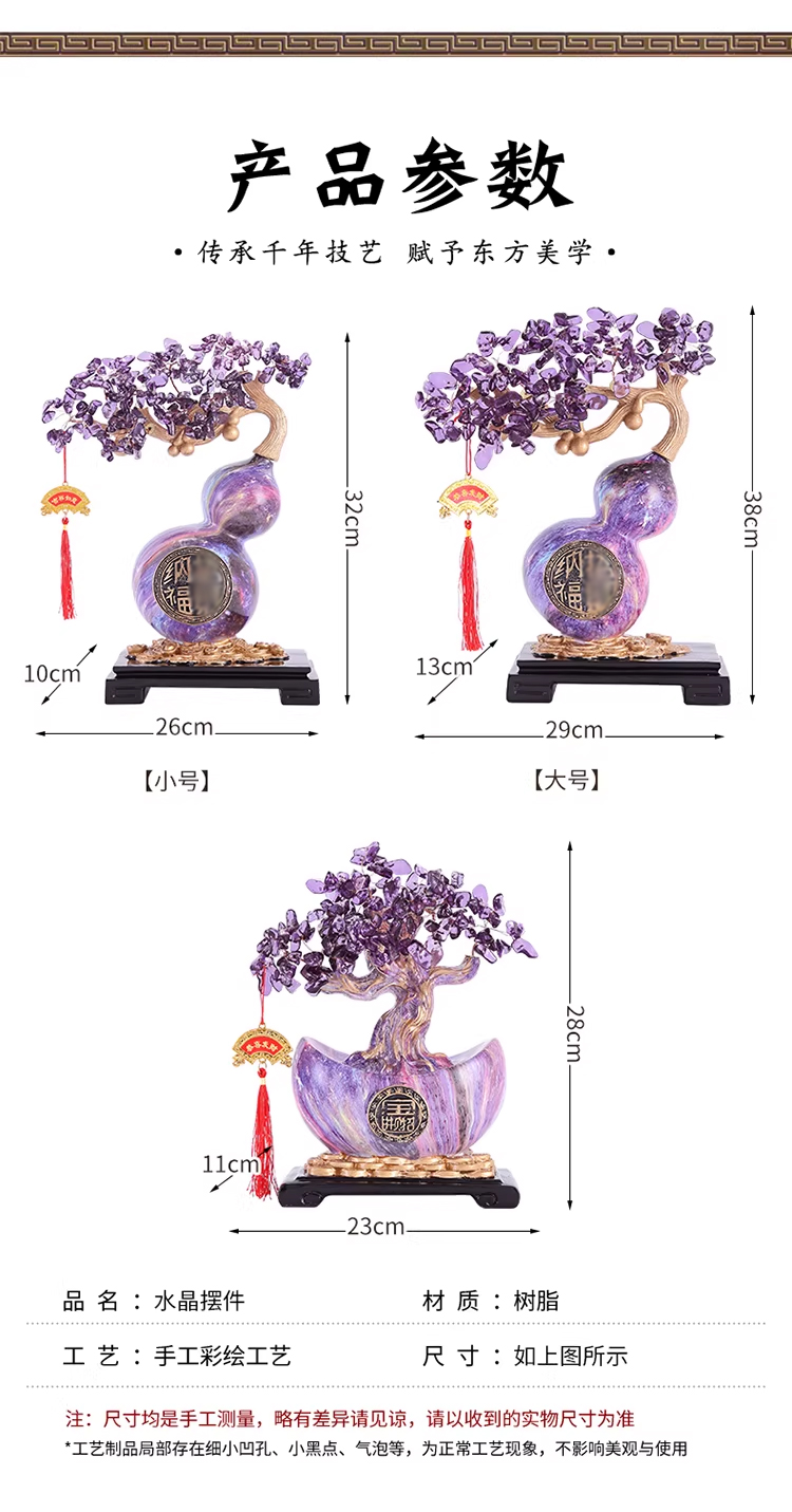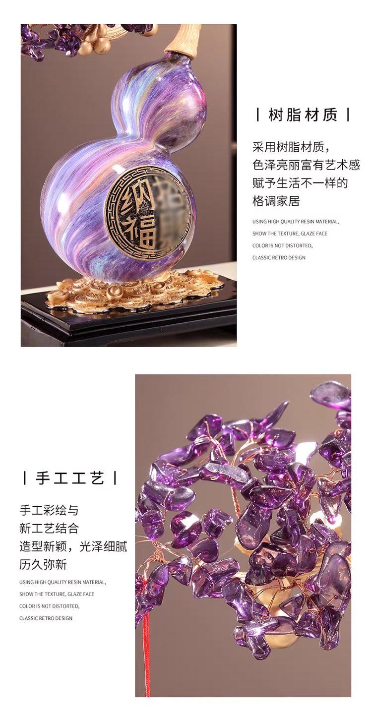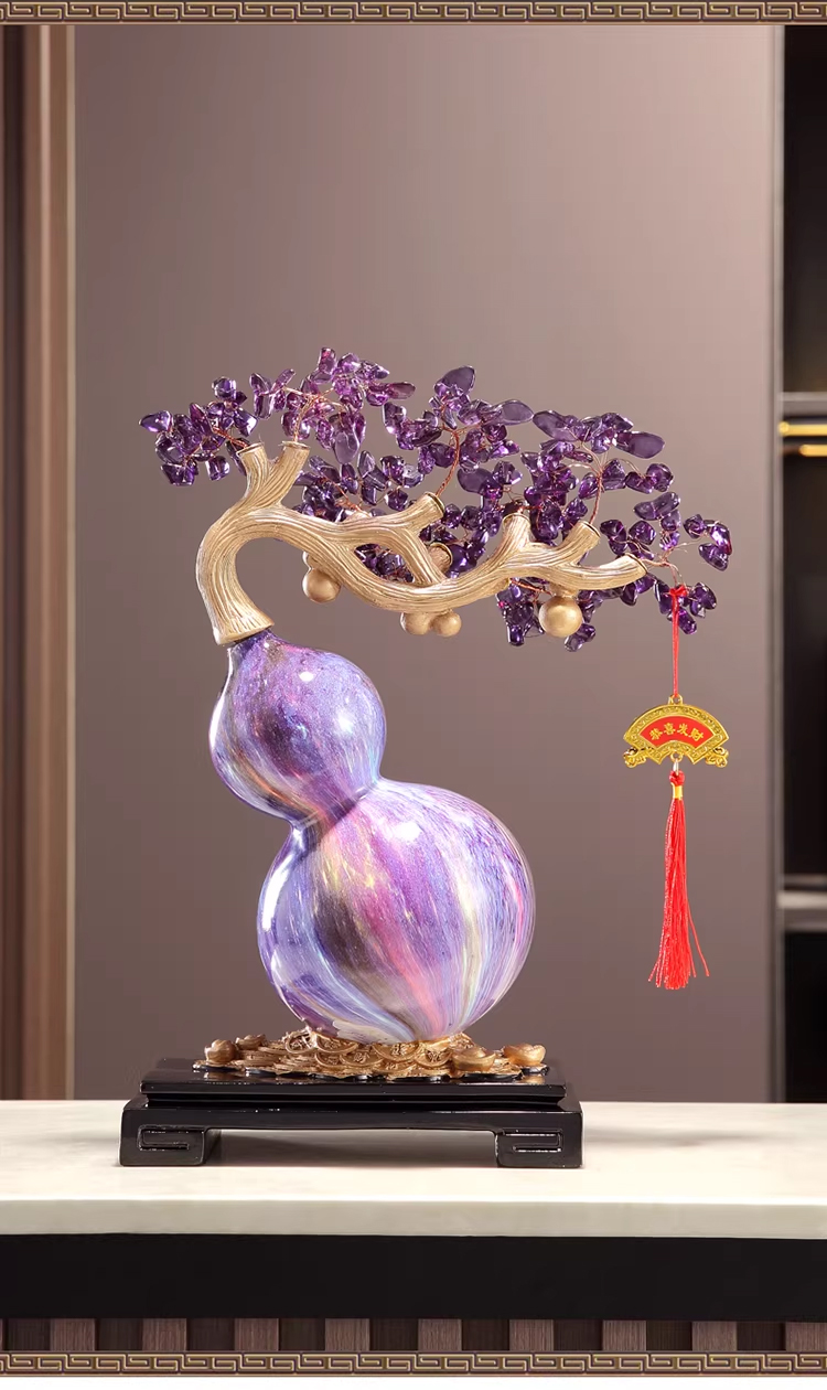 马年新品紫气东来葫芦水晶树紫水晶聚宝盆发财树摆件★客厅装饰品开业礼物搬家乔迁新居礼品