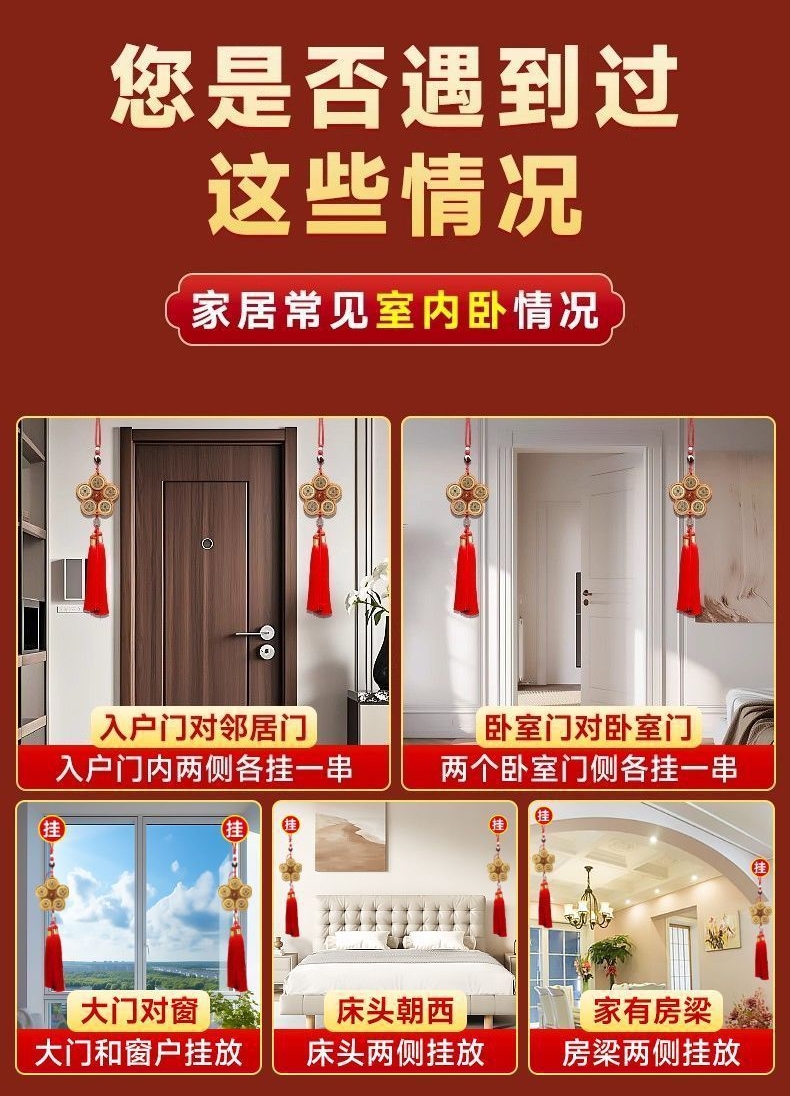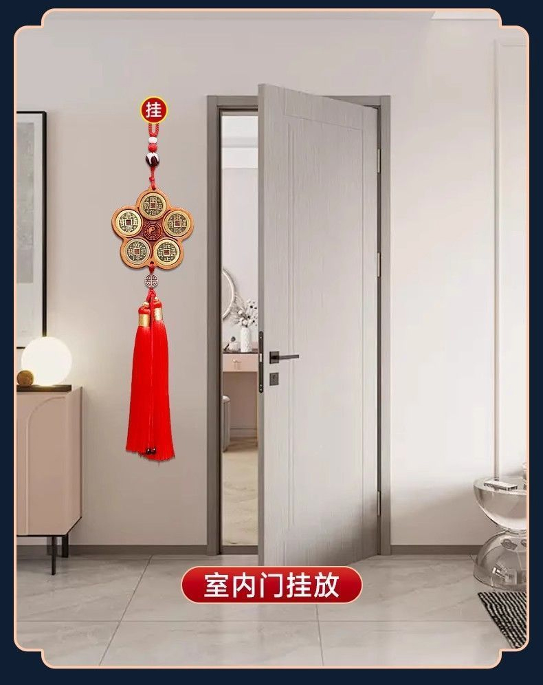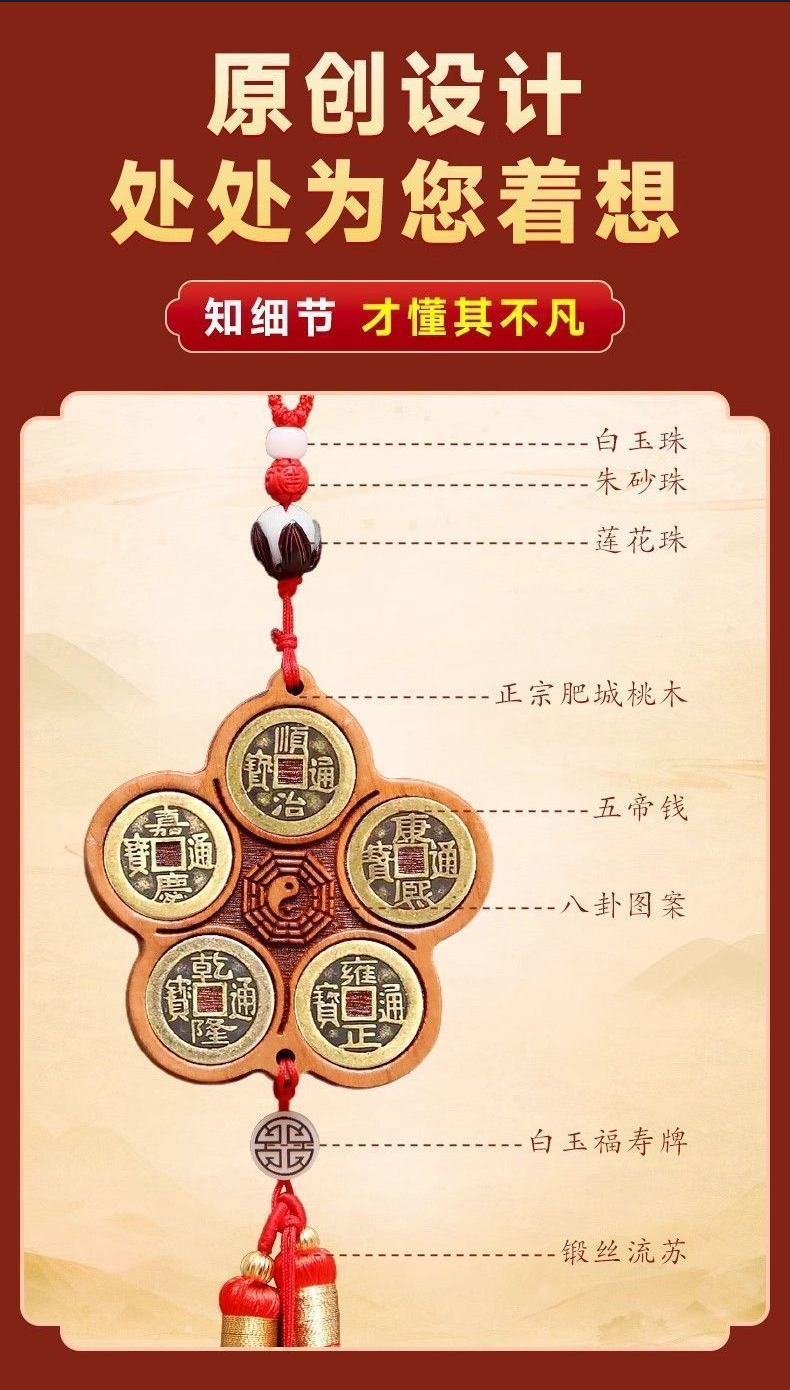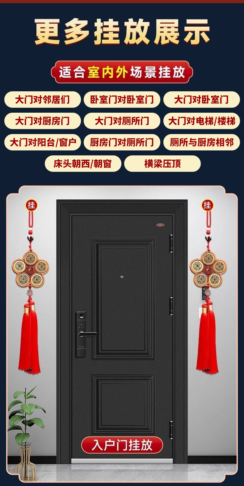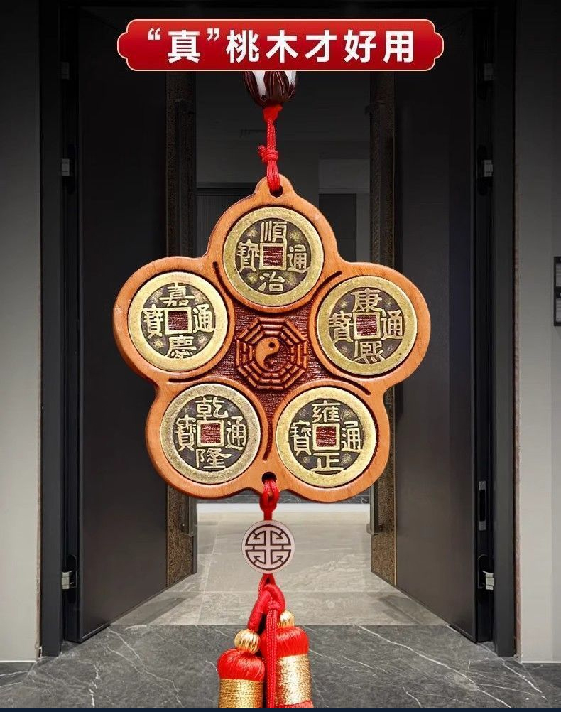 桃木梅花五帝钱挂件★大门对邻居门福禄寿喜财进宝铜钱挂件