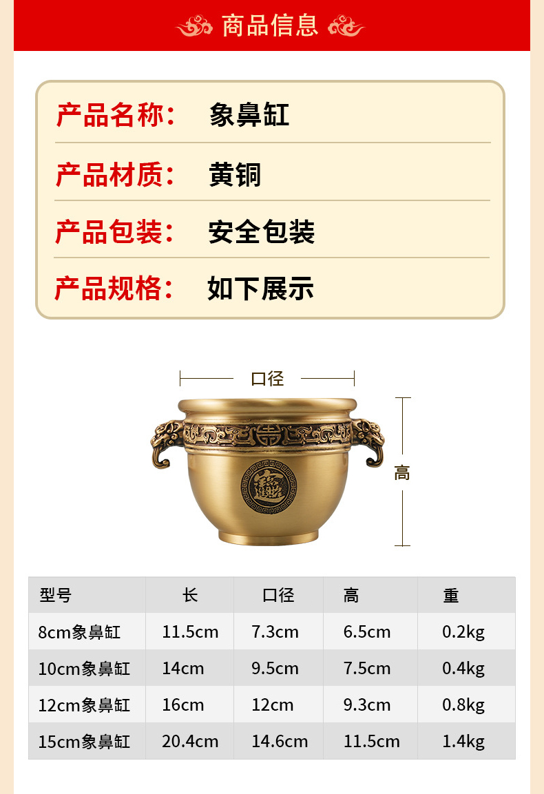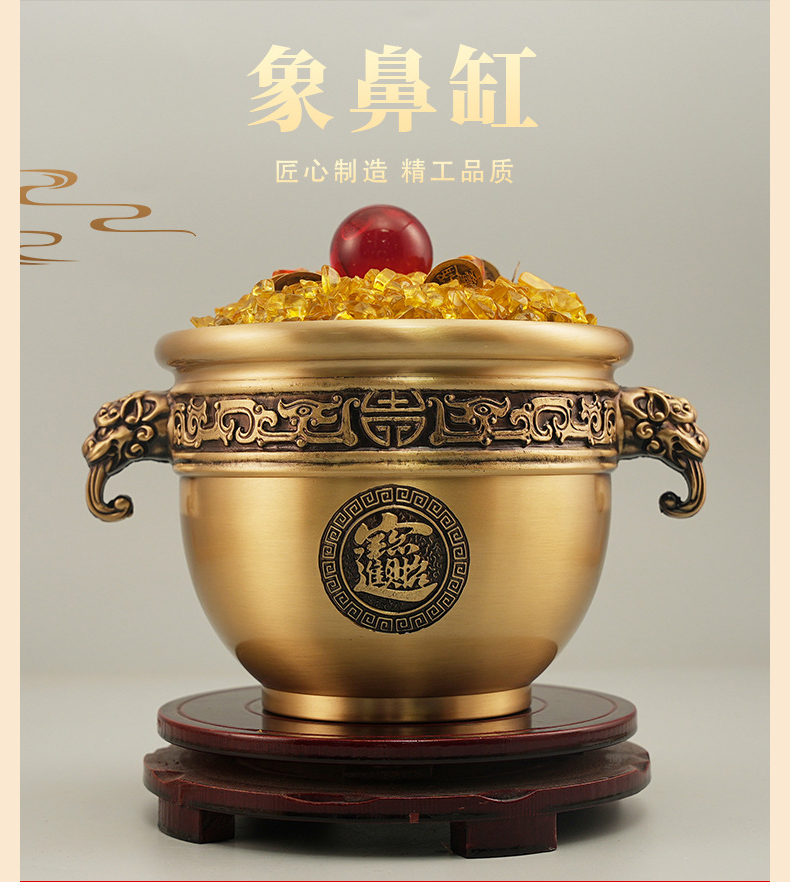 象鼻缸双耳聚宝盆★香炉米缸进宝缸店铺客厅家居工艺品办公室