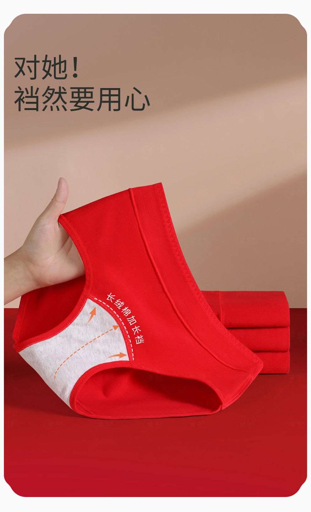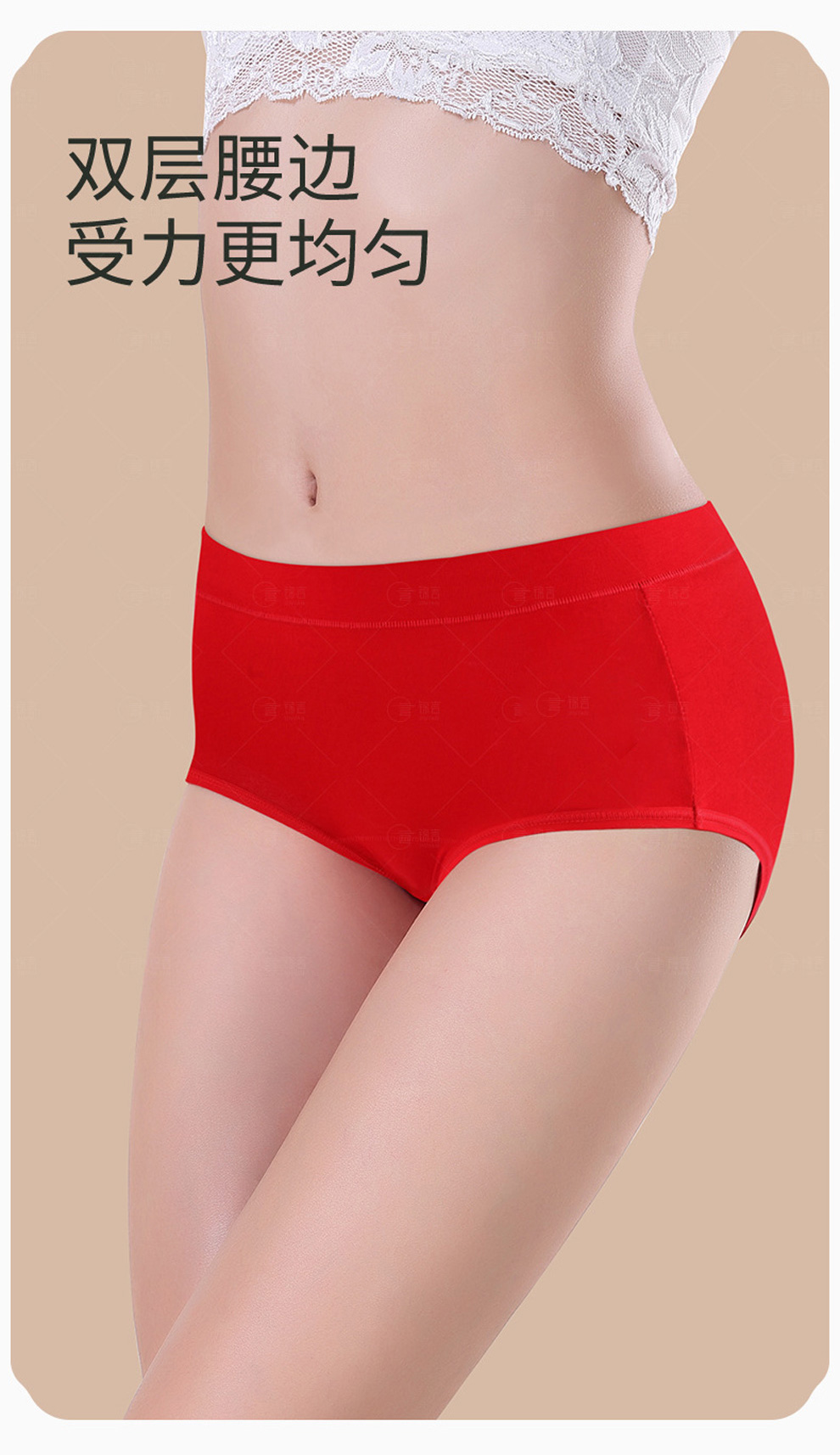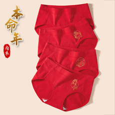 本命年红内裤★女士加长裆中腰纯棉内裤★红色礼物结婚三角裤