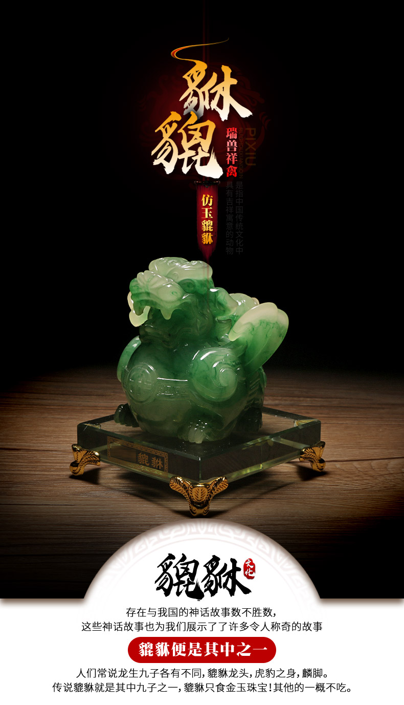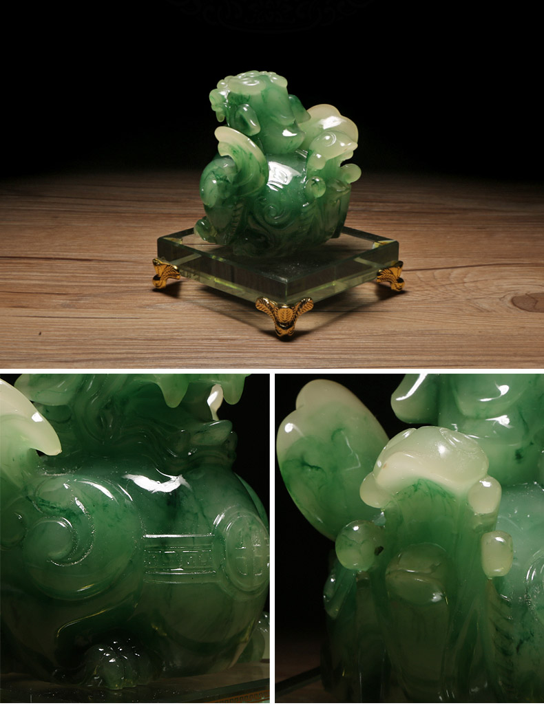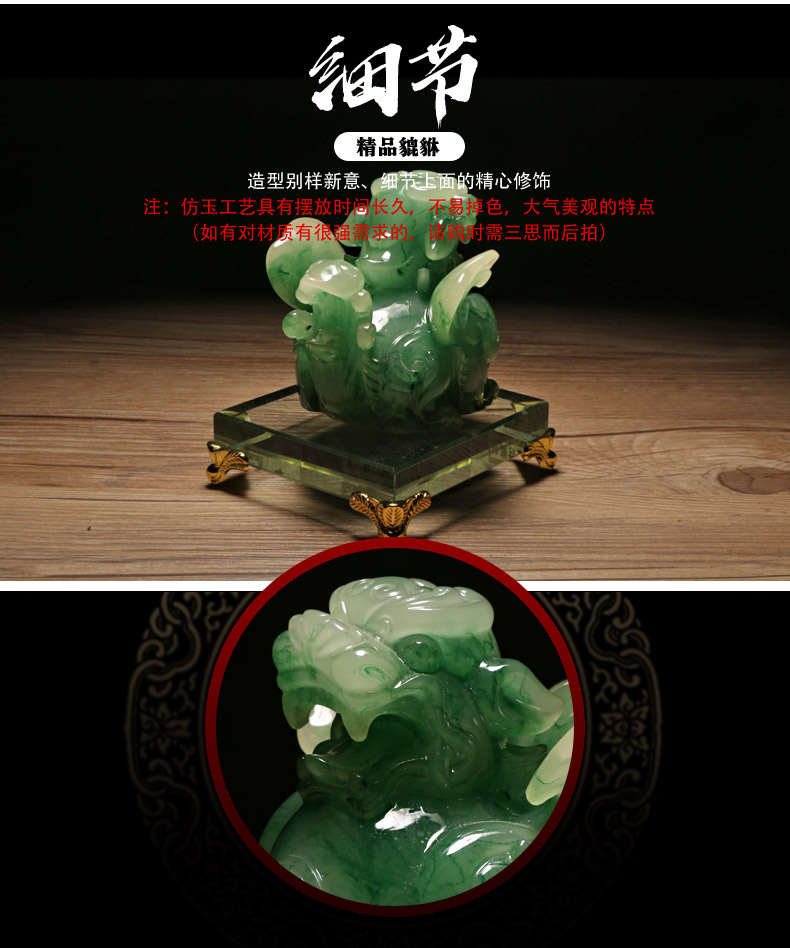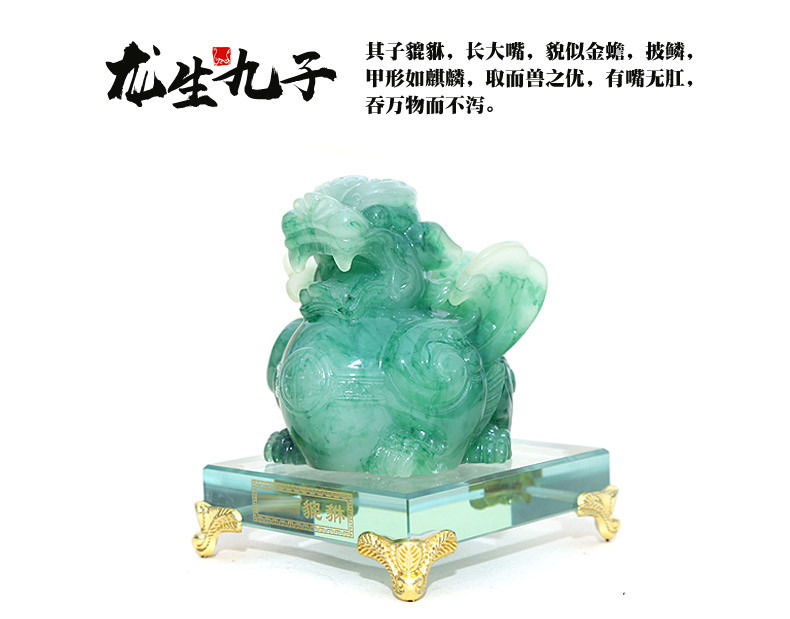 仿青玉青云直上貔貅摆件★青色绿色家居办公礼品工艺品